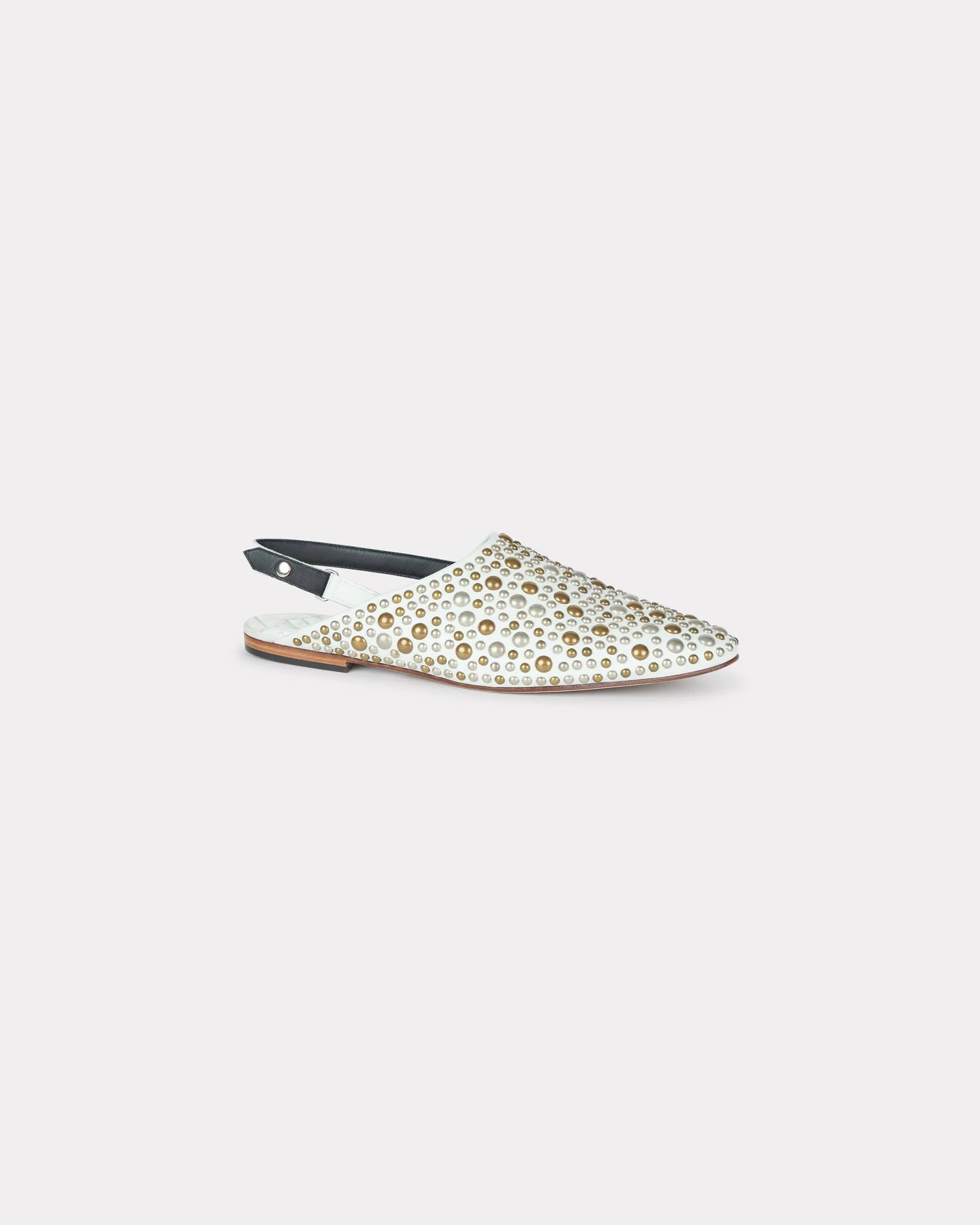 'Kenzo-Kali' mules in leather with studs. Sheep leather lining. Sole in leather. Two buttons on the external side of the shoes for strap adjustement. Product Reference: FF62MU190L83.01 SIZE & FIT Sole : 1 cm. COMPOSITION & CARE Made in Italy 100% cow leather