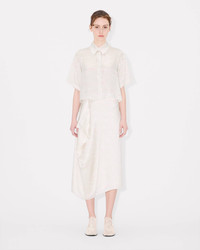 'KENZO Ocean Camo' shirt. Silk. Short sleeves. Slightly short length and single-breasted closure. 'KENZO Ocean Camo' all over print. KENZO archive signature inside the pattern and 'KENZO Paris' engraved buttons. Product Reference: FF62CH2469S2.94 SIZE & FIT The model is 175 cm tall and is wearing size S. Boxy fit. COMPOSITION & CARE Made in Tunisia 100% silk Line drying in the shade