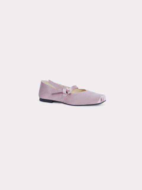 'KENZO OKI' flat ballets in viscose and silk. Elasticated strap on the inner side. Lining in leather. KENZO tonal embossed insole. 'KENZO Paris' hot stamp outsole. Flexible and ultra-light sole. Product Reference: FF52BA125F51.63 SIZE & FIT Take one size smaller than usual. 1 cm stacked leather covered heel and sole. COMPOSITION & CARE Made in Italy 72% viscose, 28% silk