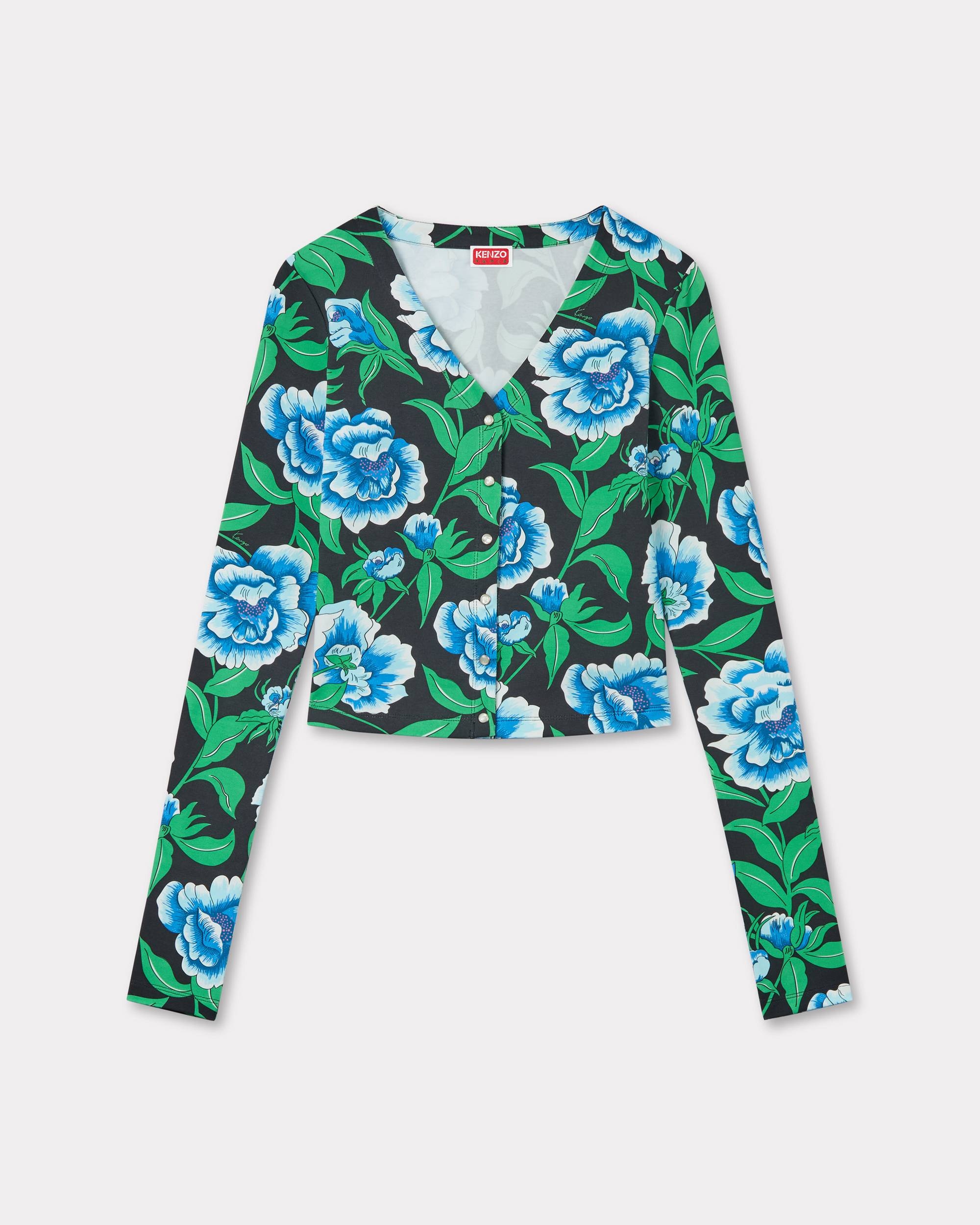 'KENZO Peonies' cardigan. Bodycon V-neck. Pearly snap-buttons. All-over ‘KENZO Peonies’ print. Branding included in the pattern. Product Reference: FF52TO7364SA.99J SIZE & FIT The model is 175 cm tall and is wearing size S. COMPOSITION & CARE Made in Portugal 92% cotton, 8% elastane Do not bleach Do not dry-clean Iron at low temperature Line drying in the shade Do not tumble dry 30°C mild fine wash Mild professional wet-cleaning