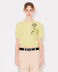 KENZO Peonies' embroidered top in light wool. Short sleeves. 'KENZO Peonies' animation. 'KENZO' archive signature embroidered at center back. Product Reference: FF52PU4953CS.38 SIZE & FIT The model is 175 cm tall and is wearing size S. Hips length. COMPOSITION & CARE Made in China 88% wool, 11% polyamide, 1% elastane Do not bleach Do not dry-clean Do not iron Flat drying in the shade Do not tumble dry Hand wash Very mild professional wet-cleaning