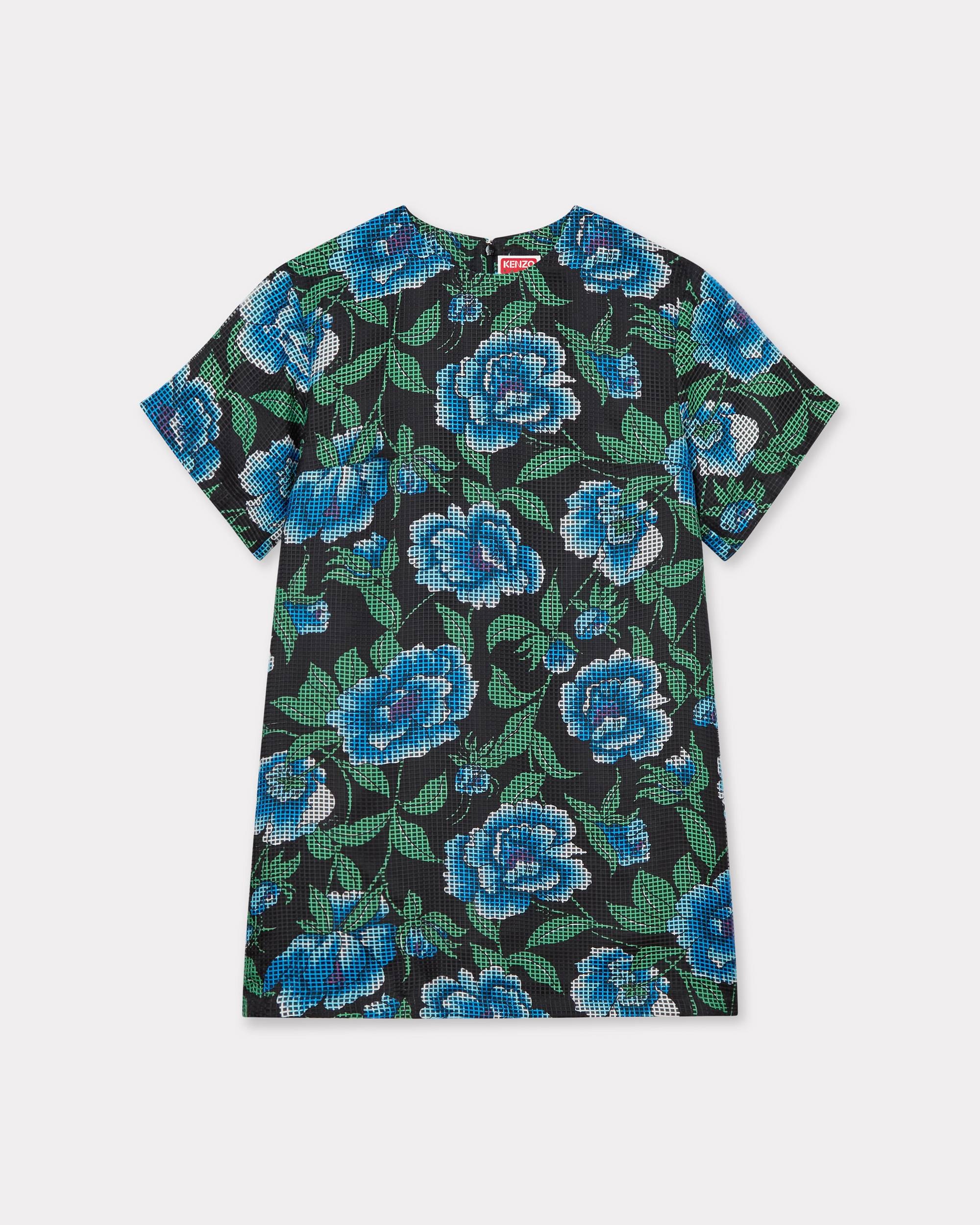 'KENZO Peonies' T-shirt dress. Mesh polyester with black lining. Zip closure at back. Two side pockets. Product Reference: FF52RO2969B1.99 SIZE & FIT The model is 175 cm tall and is wearing size S. Back length at 100 cm. COMPOSITION & CARE Made in Tunisia 100% polyester Do not bleach Mild professional dry-cleaning in: hydrocarbons Iron at low temperature Line drying in the shade Do not tumble dry Do not wash Do not wet-clean