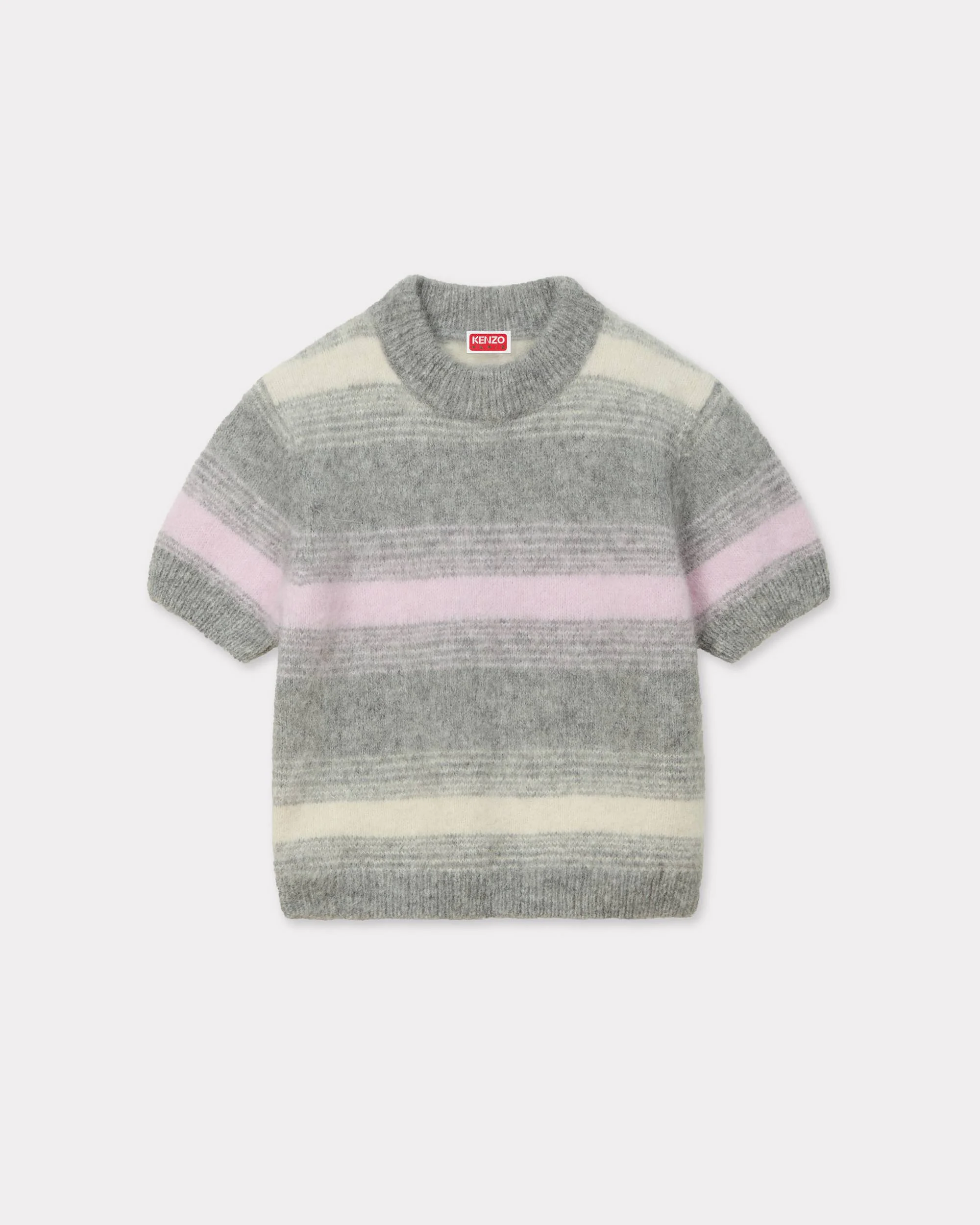 'KENZO Speed Stripe' hairy knitted top. Alpaca Wool blend. Knitted ‘KENZO label’ sewn at back below the collar. Product Reference: FF62TO6053CG.93 SIZE & FIT The model is 175 cm tall and is wearing size S. COMPOSITION & CARE Made in Bulgaria 58% alpaca, 42% polyamide Mild professional dry-cleaning in: hydrocarbons Flat drying in the shade Do not tumble dry Hand wash Very mild professional wet-cleaning