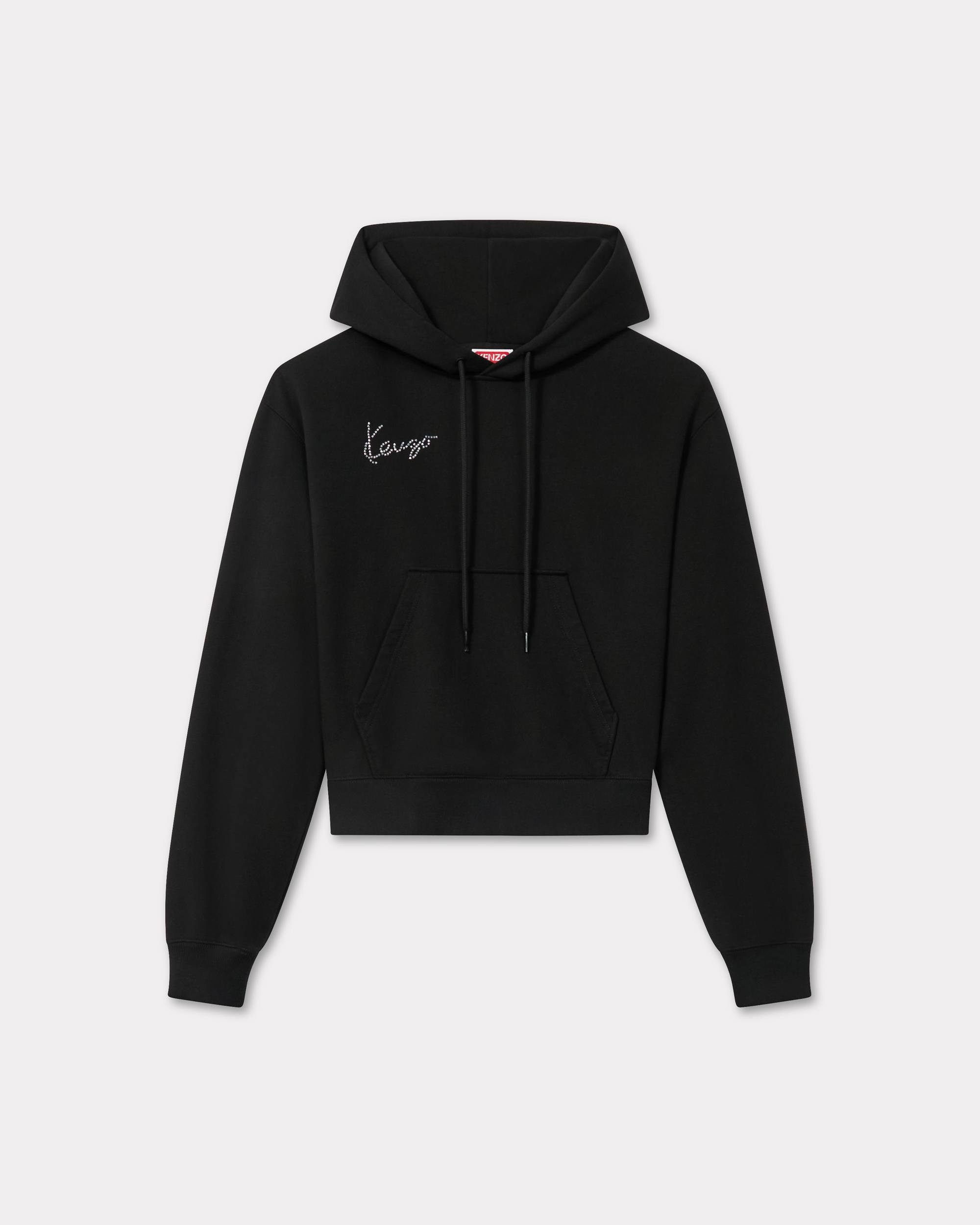 'KENZO Star Tiger' embroidered cropped hoodie. Light soft unbrushed molleton. Pearls embroidery. 'KENZO Paris' archive signature included in the pattern. Kangaroo pocket. Product Reference: FE62SW1544MF.99J SIZE & FIT The model is 175 cm tall and wears a size S. Cropped fit. COMPOSITION & CARE Made in Portugal 100% cotton Do not bleach Do not dry-clean Iron at low temperature Drip line drying Do not tumble dry Hand wash Very mild professional wet-cleaning