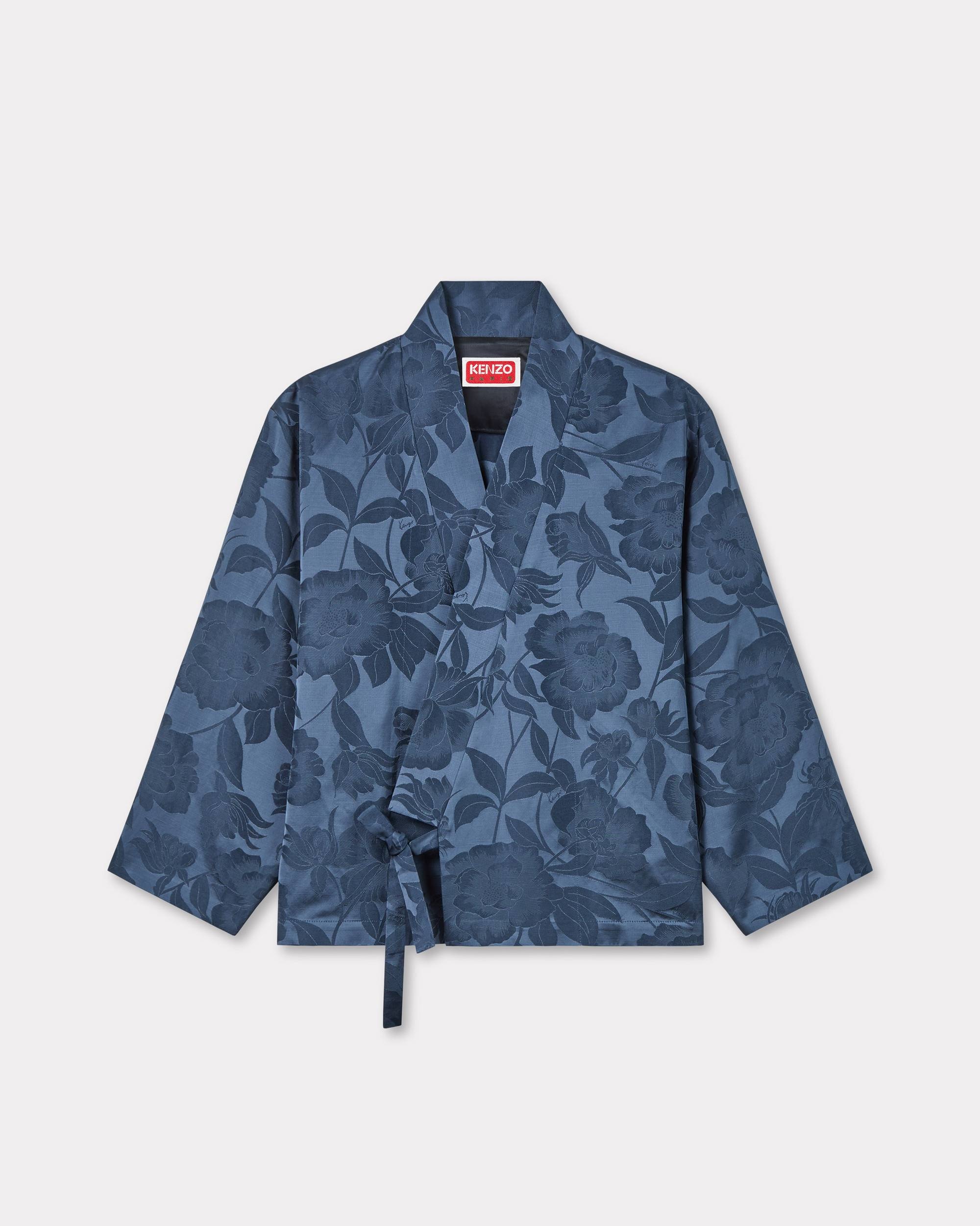 Inspired by the archives of Kenzo Takada's collections, this kimono jacket features a tone-on-tone 'KENZO Peonies' print from the Spring/Summer 1985 collection. Featuring Nigo's emblematic cut, its collar's unique and elegant design echoes the Maison's origins. This piece can also be worn as a total look with the matching trousers. 'KENZO Peonies' kimono jacket. Jacquard cotton linen. Strap kimono closure and vent at side. Metallic Boke Flower at back. Product Reference: FF52VE0329JG.67 SIZE & FIT The model is 175 cm tall and is wearing size S. Back length at 56 cm. COMPOSITION & CARE Made in Romania 60% viscose, 25% linen, 15% cotton Do not bleach Mild professional dry-cleaning in: hydrocarbons Iron at low temperature Line drying in the shade Do not tumble dry Do not wash Do not wet-clean