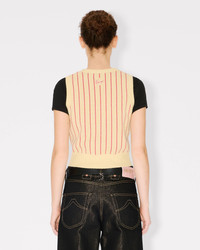 'KENZO Trompe l'œil' vest. Wool Cotton. Jacquard. Trompe l’oeil front tie Embroidered KENZO Archive signature at back below the collar. Product Reference: FG52TO6243DH.38 SIZE & FIT The model is 175 cm tall and is wearing size S. Small fit. This item is designed for a slim fit. Take your usual size. COMPOSITION & CARE Made in China 88% wool, 12% cotton Do not bleach Mild professional dry-cleaning in: hydrocarbons Iron at low temperature Flat drying in the shade Do not tumble dry 30°C very mild fine wash Very mild professional wet-cleaning