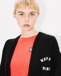 This cardigan features a 'Kenzo Paris' signature on the back with satin-stitch embroidery, embossed Boke flowers in bright colours, echoing the tones of the festive season. Cool wool and cotton cardigan. Satin-stitch embroidery. Dropped shoulders. Product Reference: FF52CA4773CX.99J SIZE & FIT The model is 175 cm tall and is wearing size S. Comfort fit. COMPOSITION & CARE Made in China 55% wool, 45% cotton Do not bleach Mild professional dry-cleaning in: hydrocarbons Iron at low temperature Flat drying in the shade Do not tumble dry Hand wash Very mild professional wet-cleaning