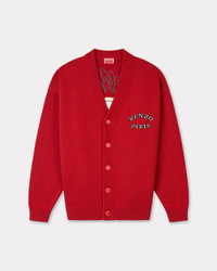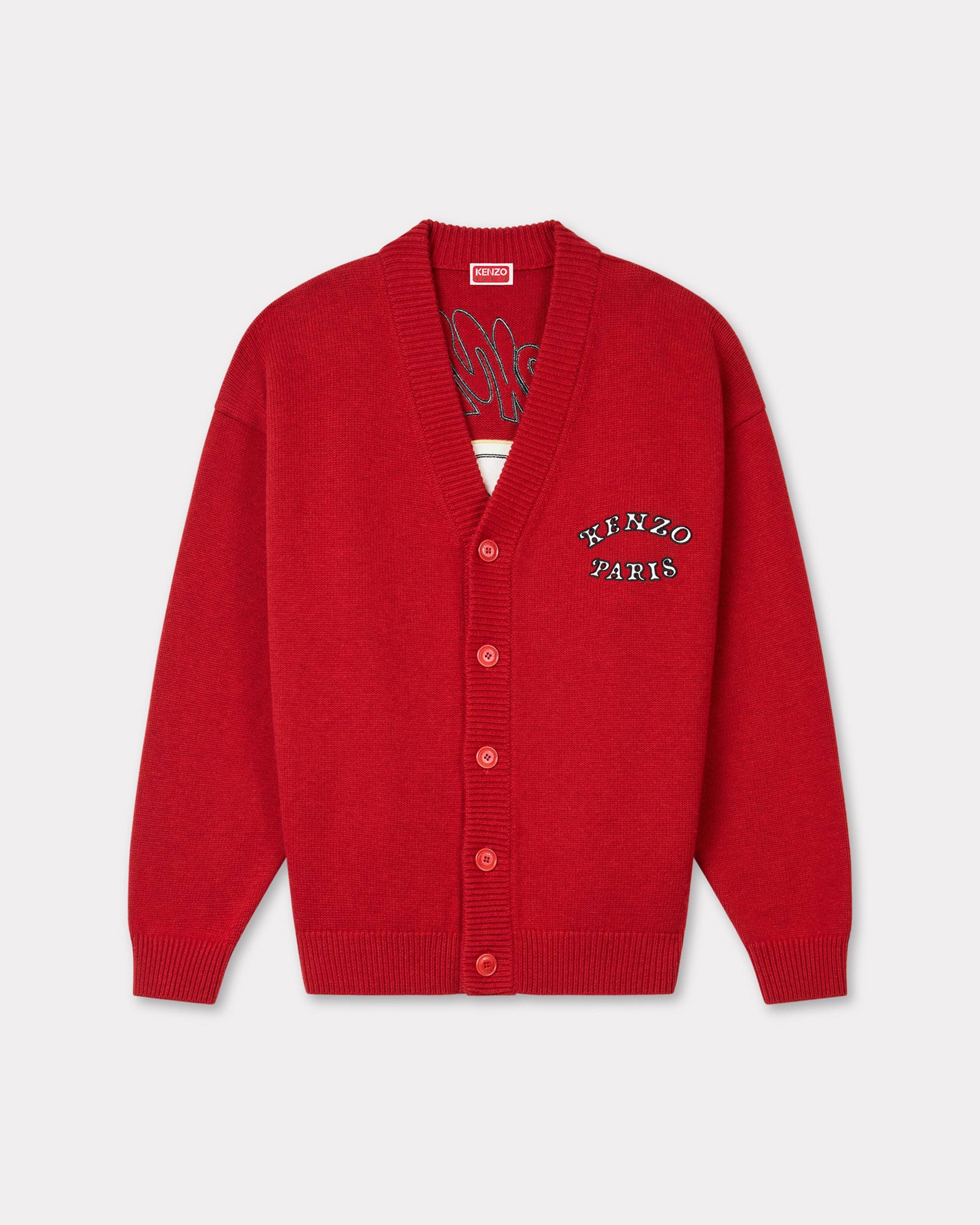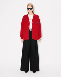 'KENZO VERDY MARKET' cardigan in wool and cotton. Genderless. Wool and organic cotton mix. Light dropped shoulders. V neck collar. Branded tone on tone buttons. Satin patch embroideries . Product Reference: FF58CA7133CK.16 SIZE & FIT The female model is 175 cm tall and is wearing size S. The male model is 185 cm tall and is wearing size M. Comfort fit. COMPOSITION & CARE Made in China 55% wool, 45% cotton Do not bleach Mild professional dry-cleaning in: hydrocarbons Iron at low temperature Flat drying in the shade Do not tumble dry Hand wash Very mild professional wet-cleaning
