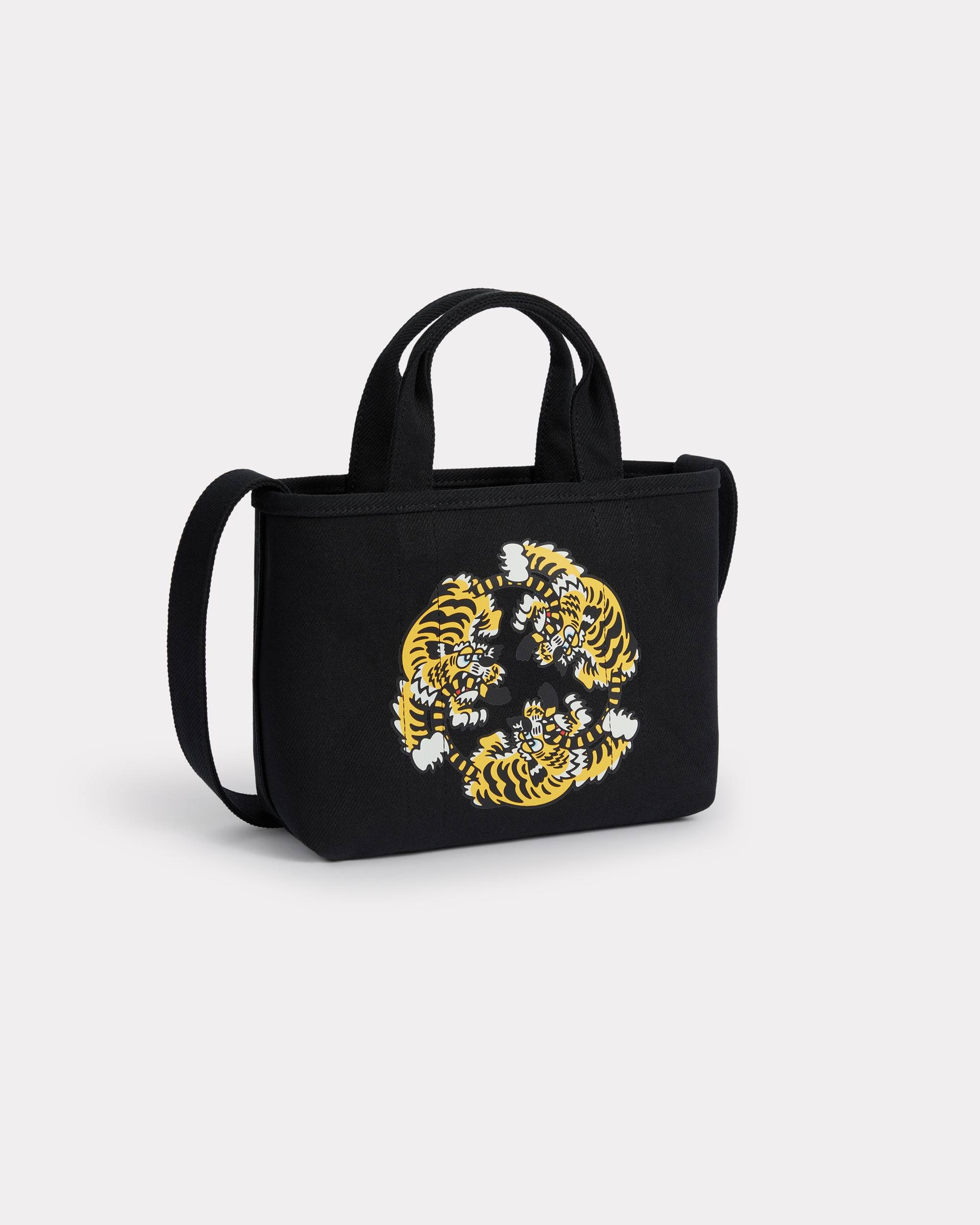 KENZO Utility' reversible small tote bag in canvas. Strap. 2 handles. Reversible. 1 flat pocket. Kenzo x Verdy Collection. SIDE A: printed graphic on the front, printed Kenzo Paris logo on the back. SIDE B: solid on the front, embroidered patch with Kenzo Paris logo on the back. Crossbody-carried or hand-carried. Product Reference: FF58SA910F37.99.TU SIZE & FIT Dimensions : 26 x 19 x 8,5 cm. Strap drop length: 56 cm. Handles drop length: 10 cm. COMPOSITION & CARE Made in China 100% cotton Do not bleach Do not dry-clean Do not iron Do not dry Do not tumble dry Do not wash Do not wet-clean