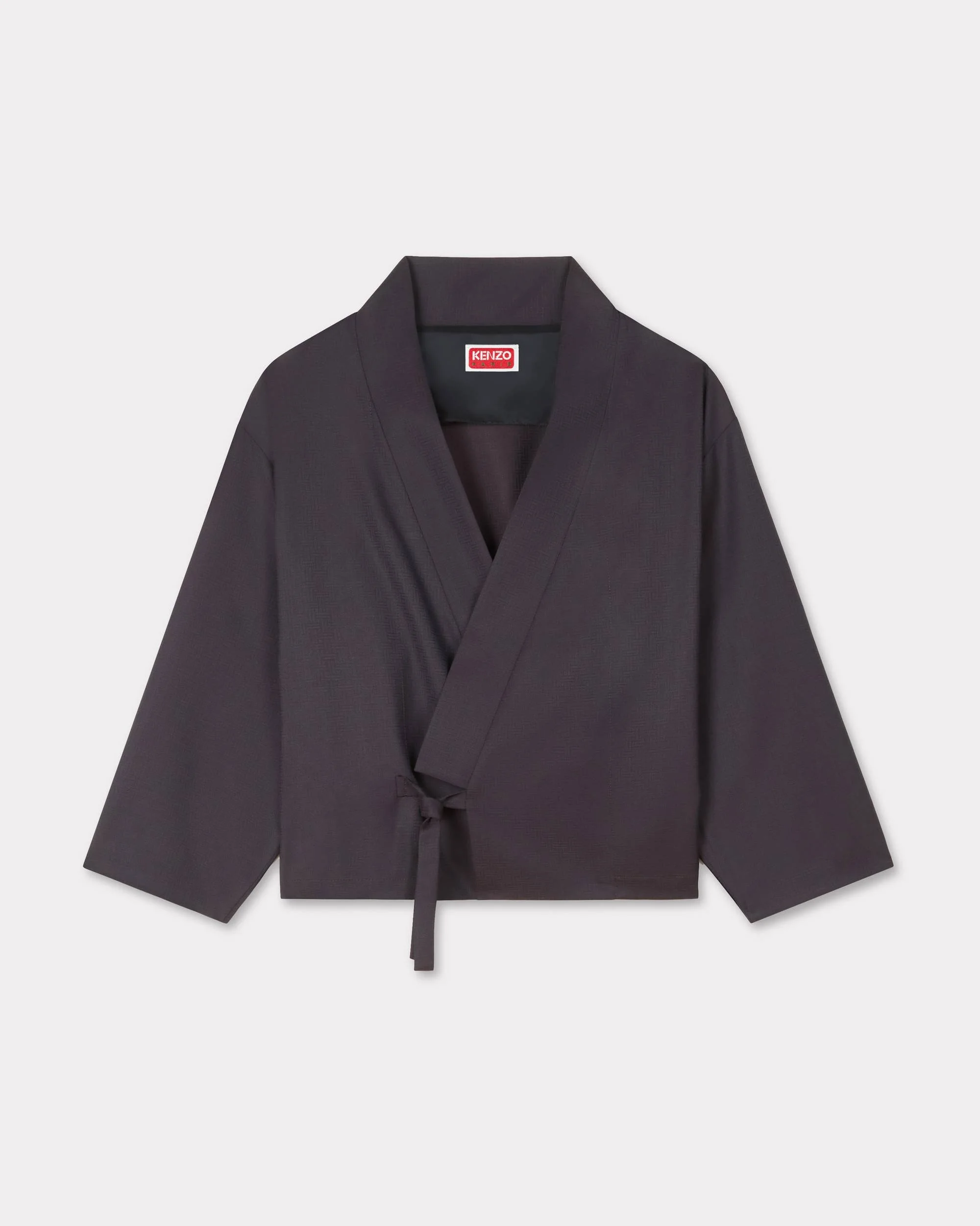 'KENZO Weave' kimono jacket. Jacquard wool. Strap kimono closure and vent at side. Tonal 'KENZO Paris' label at back. Product Reference: FF62VE0329ID.91 SIZE & FIT The model is 175 cm tall and is wearing size S. Back length at 56 cm. COMPOSITION & CARE Made in Romania 100% virgin wool Mild professional dry-cleaning in: hydrocarbons Do not wash Do not wet-clean