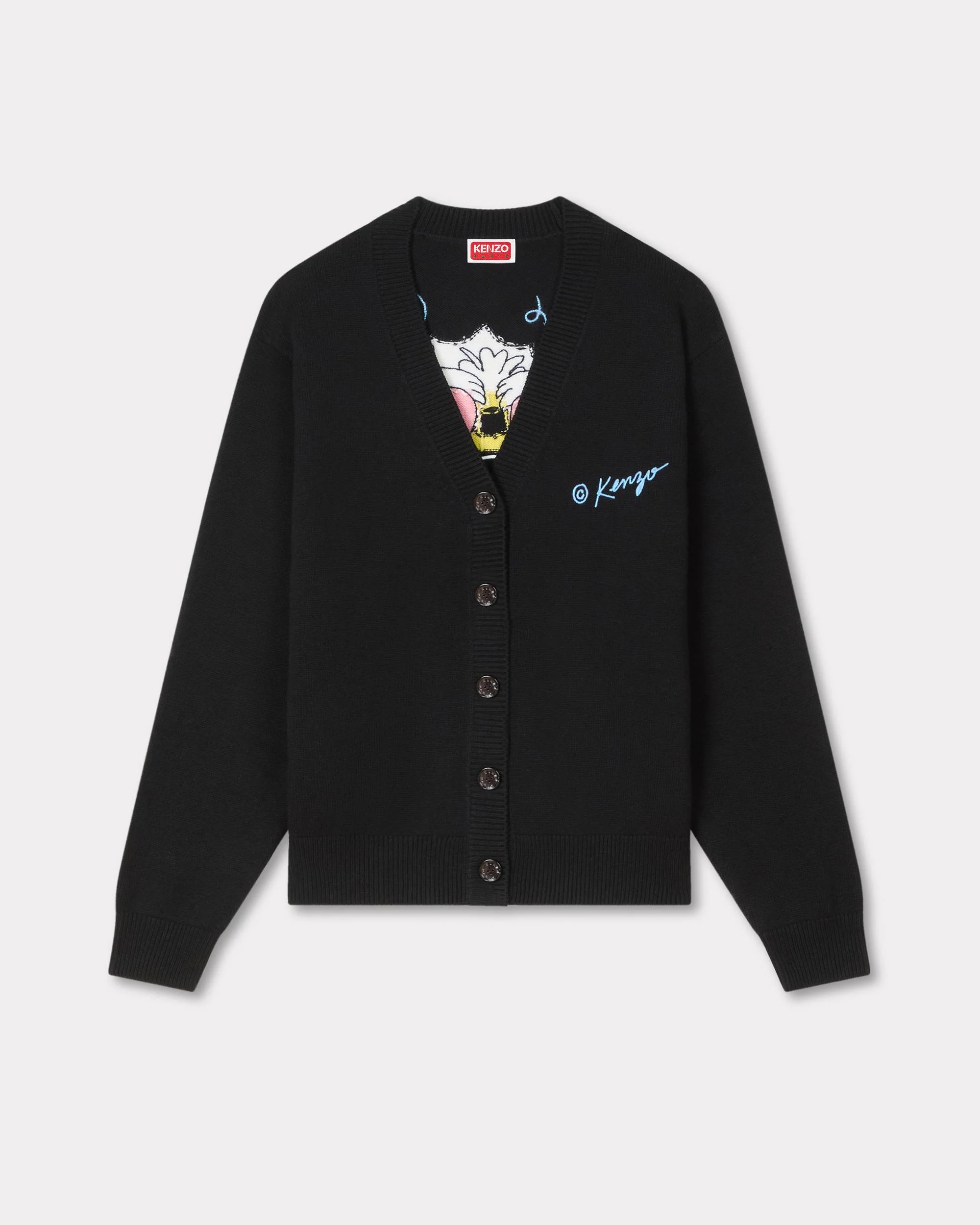 'KENZO Wild Tiger' cardigan. Wool and Cotton mix. Tone on tone branded buttons. 'Wild Tiger' as a back placed mix of intarsia and embroidery. Seasonal branding embroidered on the chest. Product Reference: FG52CA7413LO.99J SIZE & FIT The model is 175 cm tall and is wearing size S. Comfort fit. COMPOSITION & CARE Made in China 55% wool, 45% cotton Do not bleach Mild professional dry-cleaning in: hydrocarbons Iron at low temperature Flat drying in the shade Do not tumble dry 30°C very mild fine wash Very mild professional wet-cleaning