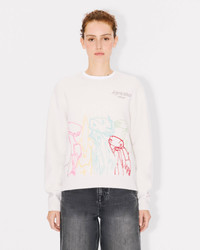This wool jumper has an embroidered trim and celebrates the unique collaboration between Kenzo and Futura 2000. In true Kenzo style, it has a brightly-coloured version of Pointman, the artist's famous character. The piece is trimmed with a graffiti-style embroidered 'Kenzo Paris' on the chest, redesigned by the artist. 'Kenzo x Futura 2000' jumper. Wool. Embroidered branding at chest. Product Reference: FF62PU7333BP.02 SIZE & FIT The model is 175 cm tall and is wearing size S. COMPOSITION & CARE Made in China 100% wool Do not bleach Do not dry-clean Iron at low temperature Flat drying in the shade Do not tumble dry 30°C very mild fine wash Very mild professional wet-cleaning