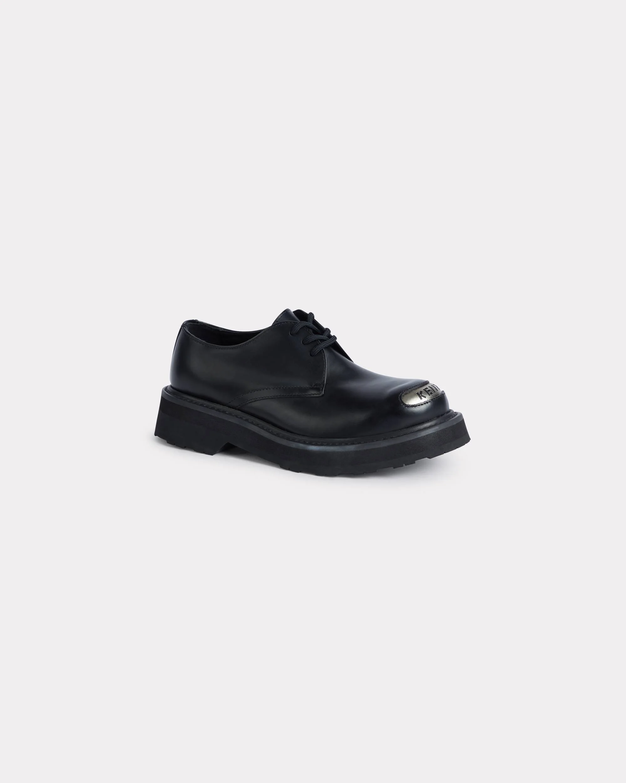 'KENZOSMILE' derbies. Glazed calf leather. Calf leather lining. Rubber and EVA sole. 'KENZOSMILE' signature on the brass toe cap. Product Reference: FF62DB111L52.99 SIZE & FIT Sole: 3.5 cm. COMPOSITION & CARE Made in Portugal 100% calf leather