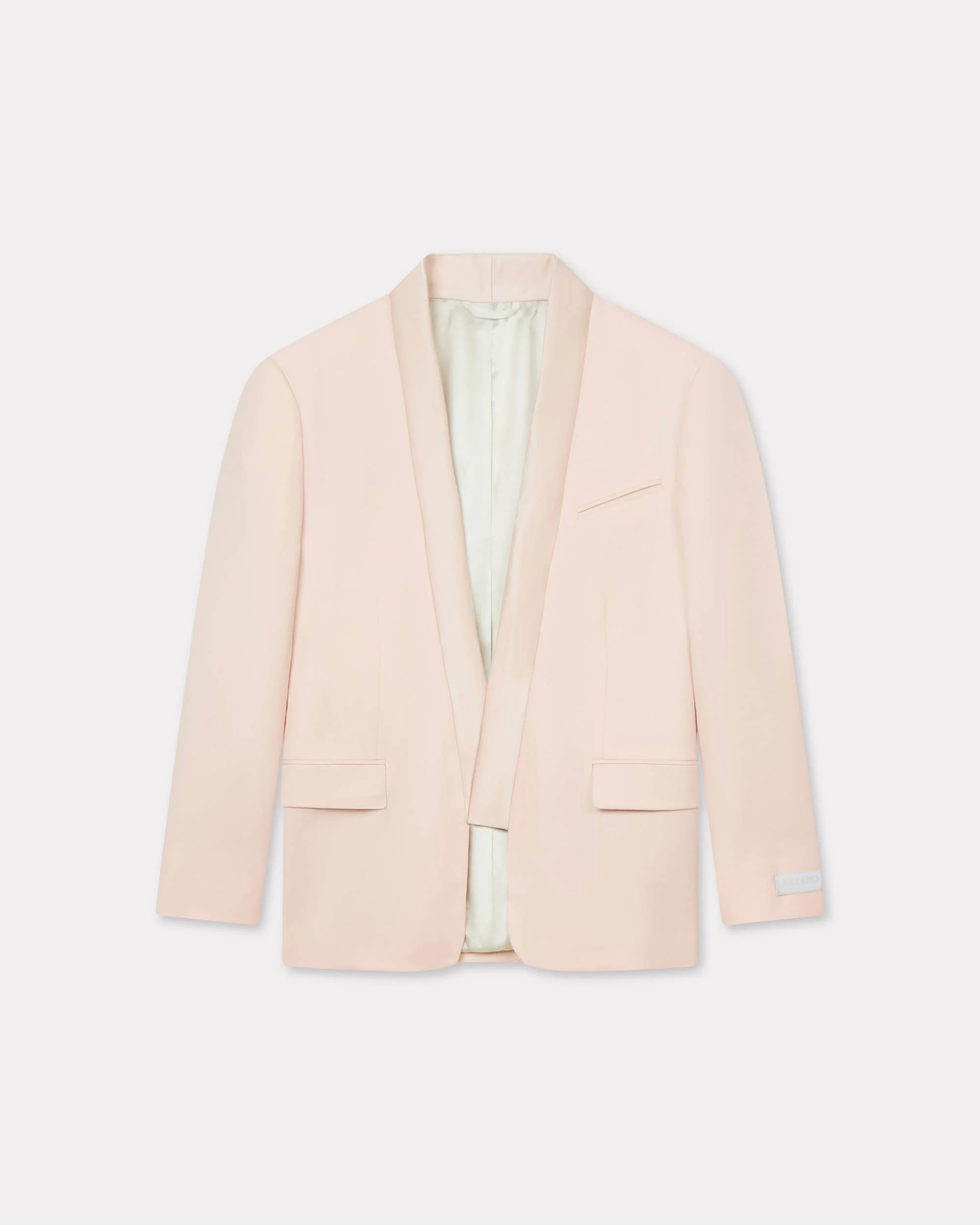 Kimono blazer. Virgin wool and satin lining. 2 jetted pockets and 1 double jetted pocket at chest. One double jetted pocket inside. Tonal 'KENZO Paris' label at sleeve. Product Reference: FF62VE2839TV.09 SIZE & FIT The model is 175 cm tall and is wearing size S. COMPOSITION & CARE Made in Portugal 100% virgin wool Line drying in the shade Do not tumble dry Do not wash Do not wet-clean