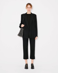 Kimono blazer in virgin wool. Satin 'KENZO Paris' jacquard lining. 2 jetted pockets and 1 welt pocket at chest. Inside pocket with one with button closure. Back vent and 2 buttons double-breasted closure. Tonal 'KENZO Paris' label at sleeve and 'KENZO Paris' engraved buttons. Product Reference: FF52VE2589RA.99 SIZE & FIT The model is 175 cm tall and is wearing size S. Back length at 68 cm. COMPOSITION & CARE Made in Portugal 100% virgin wool Do not bleach Mild professional dry-cleaning in: hydrocarbons Iron at low temperature Line drying in the shade Do not tumble dry Do not wash Do not wet-clean