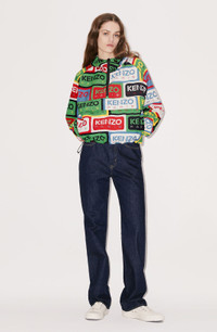 This hoodie jacket is an ongoing part of the KENZO collections. Labels from the archives are printed over the whole garment in a nod to the House's1980s fashion shows. This lightweight piece pulls on like a sweatshirt for an on-trend streetwear touch. Nylon windbreaker. Long sleeves. Hood. All-over 'KENZO Labels' print. Large pocket with zip at front. Pull cord at waist. Fastens with a half zip. Folds into a small, easy-to-carry pouch. SIZE & FIT Length of back: 57 cm. COMPOSITION & CARE Made in China 100% nylon