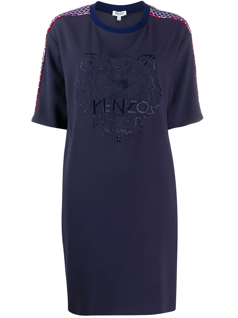 logo-embroidered shift dress Simultaneously there...and not there, hidden and yet visible, stylish and....well, still stylish. The tonal embroidered logo on this shift dress from Kenzo has mastered the art of hiding in plain sight, and is here to help you do the same thing. Blend in and stand out. Featuring a round neck, a stripe detail to the side, short sleeves, a shift silhouette, a short length and a tonal embroidered logo at the chest. Imported Composition Outer: Viscose 100%, Triacetate 82%, Polyester 18% Lining: Polyester 100% SIZE & FIT Model measurements Height 5 ft 10 in(1.77 m) Bust/Chest 35.03 in(89 cm) Hips 35.03 in(89 cm) Waist 23.62 in(60 cm) FittingInformation This piece fits true to size. We recommend you get your regular size Cut for a loose fit Made with a mid-weight fabric