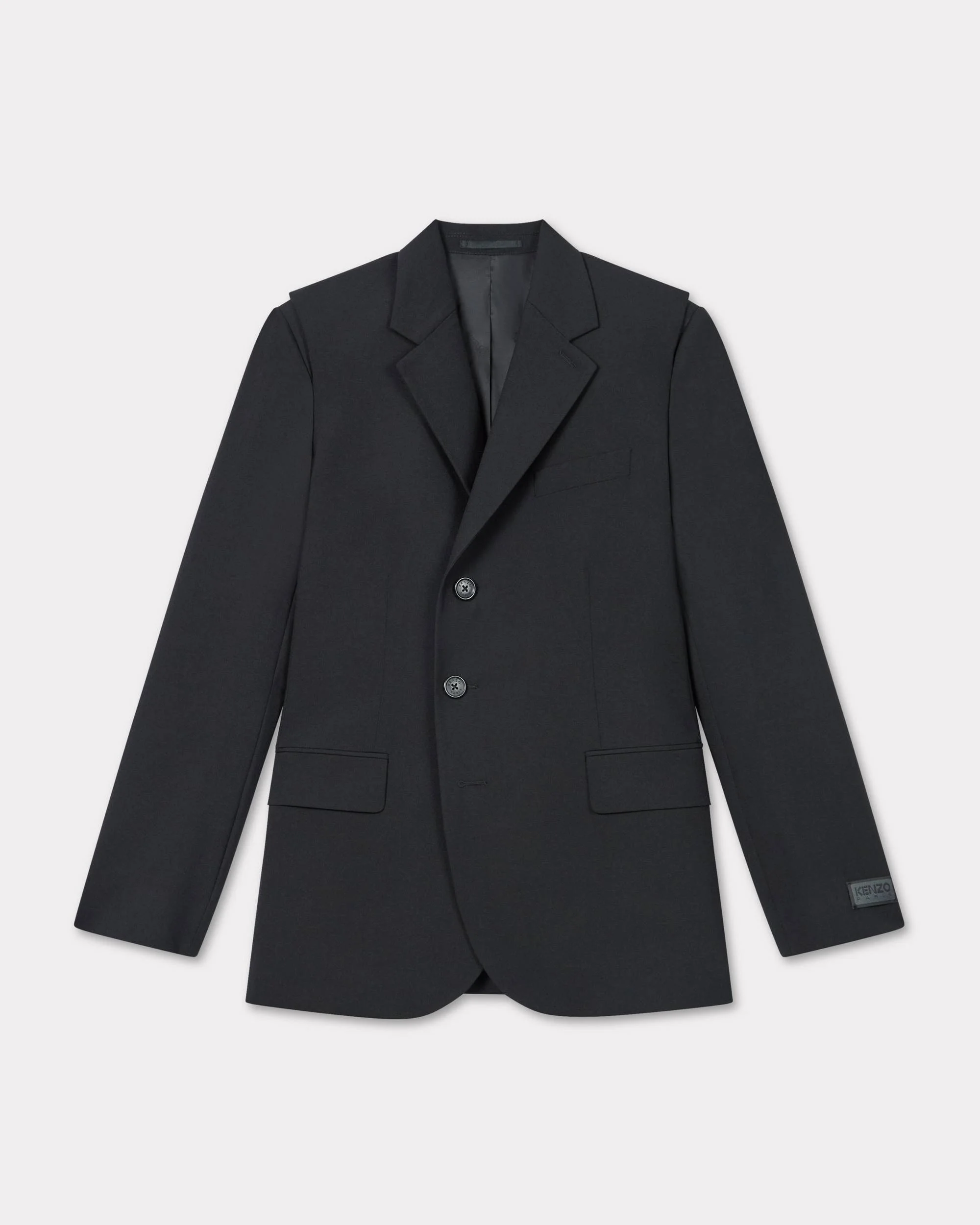 Waisted blazer. Virgin wool and satin lining. Japanese detail at shoulders. 2 jetted pockets and 1 welt pocket at chest. Two inside pockets with one with button closure. Cuff with 4 buttons and side vents. KENZO Paris label at sleeve. Product Reference: FE62VE2549GE.99 SIZE & FIT The model is 175 cm tall and wears a size S. Back lentgh at 75 cm. COMPOSITION & CARE Made in Portugal 100% virgin wool Do not bleach Mild professional dry-cleaning in: hydrocarbons Iron at low temperature Line drying in the shade Do not tumble dry Do not wash Do not wet-clean