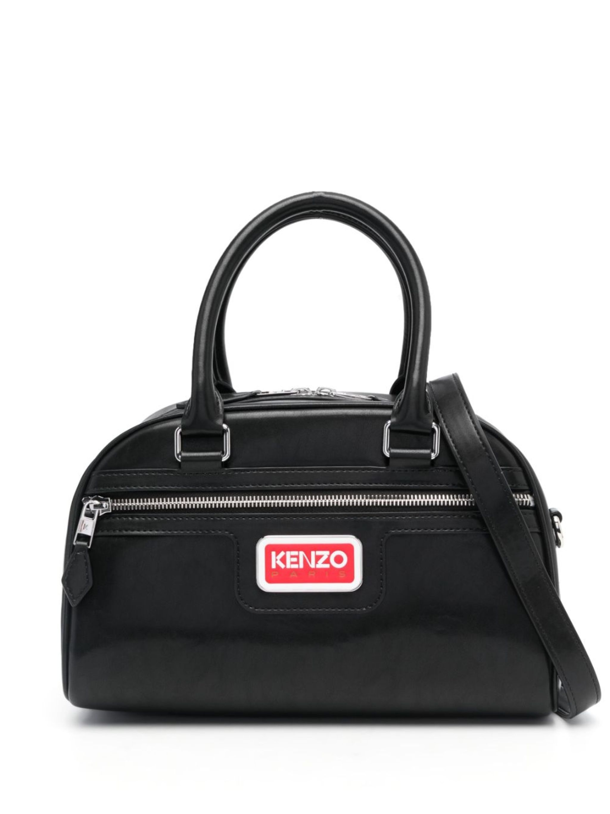 logo-plaque zip-up tote bag from KENZO featuring jet black, cotton lining, silver-tone logo plaque, adjustable detachable shoulder strap, two top handles, front zip-fastening pocket, two-way zip fastening, main compartment and internal logo patch. Size & Fit Model Measurements: Bust: 84cm Height: 177cm Hips: 88cm Waist: 65cm DEPTH: 13cm HANDLE: 13cm HEIGHT: 17cm STRAP: 67cm WIDTH: 28cm