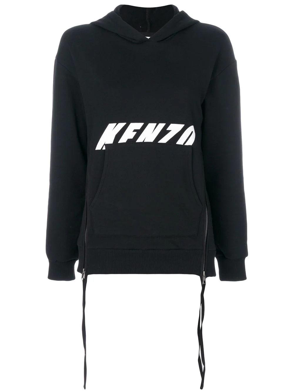 logo print sweatshirt Japanese designer Kenzo Takada launched Kenzo in Paris in 1970. Today, under the creative direction of Opening Ceremony's Humberto Leon and Carol Lim, the label is as popular as ever thanks to its refreshed aesthetic. This casual black hoodie from Kenzo is made from soft cotton and features a hood, a kangaroo pocket, long sleeves and front zip details. Imported Composition Cotton 100% Washing instructions Machine Wash