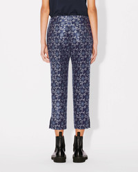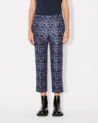 'KENZO Marguerite' cropped pants. Jacquard polyester. Classic closure with a zip and engraved button. 2 seam pockets at side and 2 jetted pockets at back. Small vent at back bottom. KENZO archive signature inside the print. Product Reference: FE62PA0939JO.79 SIZE & FIT Low waist The female model is 175 cm tall and is wearing size S. COMPOSITION & CARE Made in Romania 100% polyester Do not bleach Mild professional dry-cleaning in: hydrocarbons Iron at low temperature Line drying in the shade Do not tumble dry Do not wash Do not wet-clean