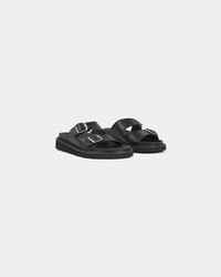 These comfortable leather mules feature a flexible EVA outsole, adjustable straps for a secure fit and an insole covered with leather for optimal grip. An engraved 'KENZO Paris' logo appears on the shiny buckles for a stylish finishing touch. Vegetable-tanned leather mules with straps. Leather-covered insole. EVA outsole. Leather lining. Adjustable silvery buckles engraved with 'KENZO Paris.' Product Reference: FE52MU040L62.99 SIZE & FIT Sole thickness: 3,5 cm. COMPOSITION & CARE Made in Portugal 100% cow leather, 100% sheep leather