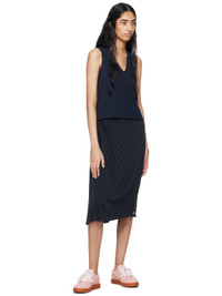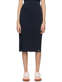 Navy Sun-Ray Pleats Midi Skirt