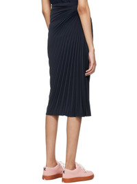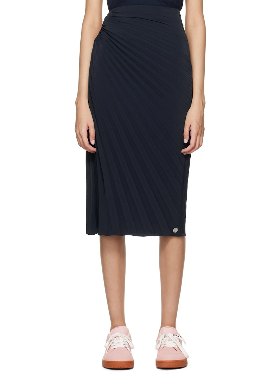 Polyester crepe skirt. Pleats and gathering throughout. · Cutout at waistband · Logo plaque at hem · Concealed zip closure at side seam Supplier color: Blue black 100% polyester. Made in Madagascar 242387F092000