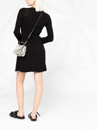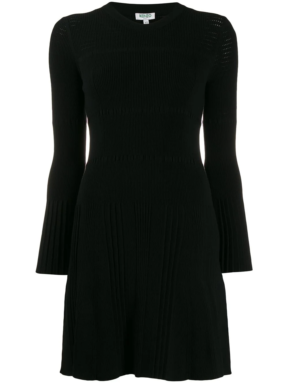 openwork knit dress Best known for their audacious motifs and streetwear-inspired shapes, look to Kenzo to keep your casual wardrobe up to date. This black openwork knit dress features a round neck, long sleeves, a flared skirt, pleated details, a short length and a stretch fit. Imported Composition Viscose 70%, Polyester 30% SIZE & FIT Model measurements Height 5 ft 9 in(1.75 m) Bust/Chest 31.88 in(81 cm) Hips 34.64 in(88 cm) Waist 22.83 in(58 cm) FittingInformation This piece fits true to size. We recommend you get your regular size Designed for a close fit at the bust and waist, but loose at the hip Made with a mid-weight fabric Washing instructions Machine Wash