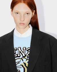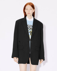 Oversized blazer. Cool wool and white satin lining. Kimono sleeve detail at back. 2 jetted pockets and 1 welt pocket at chest. Two inside pockets with one with button closure. Cuff with 4 buttons and side vents. Blue 'Kenzo Paris' label at sleeve. Product Reference: FE52VE2469RB.99 SIZE & FIT Back length at 82 cm. Oversize cut. The model is 175 cm tall and wears a size S. COMPOSITION & CARE Made in Portugal 76% virgin wool, 23% cotton, 1% elastane Do not bleach Mild professional dry-cleaning in: hydrocarbons Iron at low temperature Line drying in the shade Do not tumble dry Do not wash Do not wet-clean