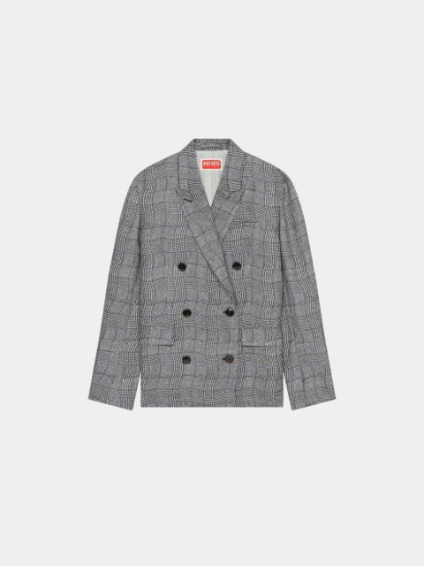 This blazer is composed of waffle-weave cotton offering a classic look with a super trendy gingham pattern. The oversized fit creates a laid-back feel. We love the contrasting buttons on the cuffs and the front flap pockets. Waffle-weave cotton blazer. Long sleeves with buttoned cuffs. Classic collar. All-over gingham pattern. KENZO Paris label inside. Front flap pockets. Button fastening. COMPOSITION & CARE Made in Romania 74% cotton, 25% polyester, 1% lycra