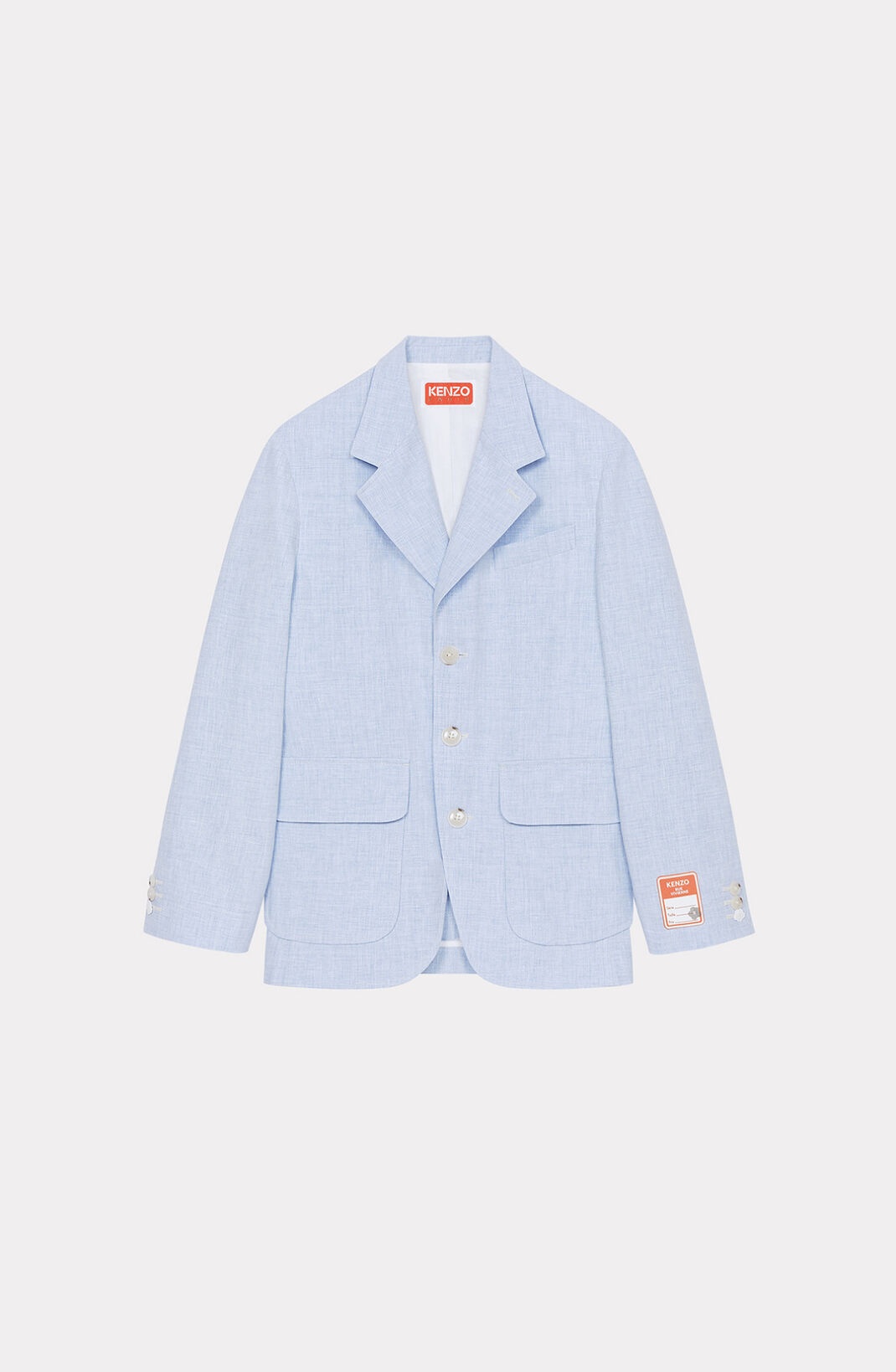This linen blazer takes the tailoring trend and transforms it into a comfortable jacket that is great for everyday wear. The oversized cut and contrasting details create a highly modern look. Pair it with the matching shorts for a bold outfit that plays with mismatched cuts. Oversized linen blazer. Long sleeves. Classic collar. KENZO Paris label on left sleeve. Large flap pockets on front. Buttoned cuffs. Semi-lined. Button fastening. COMPOSITION & CARE Made in Romania 80% linen, 20% polyamide