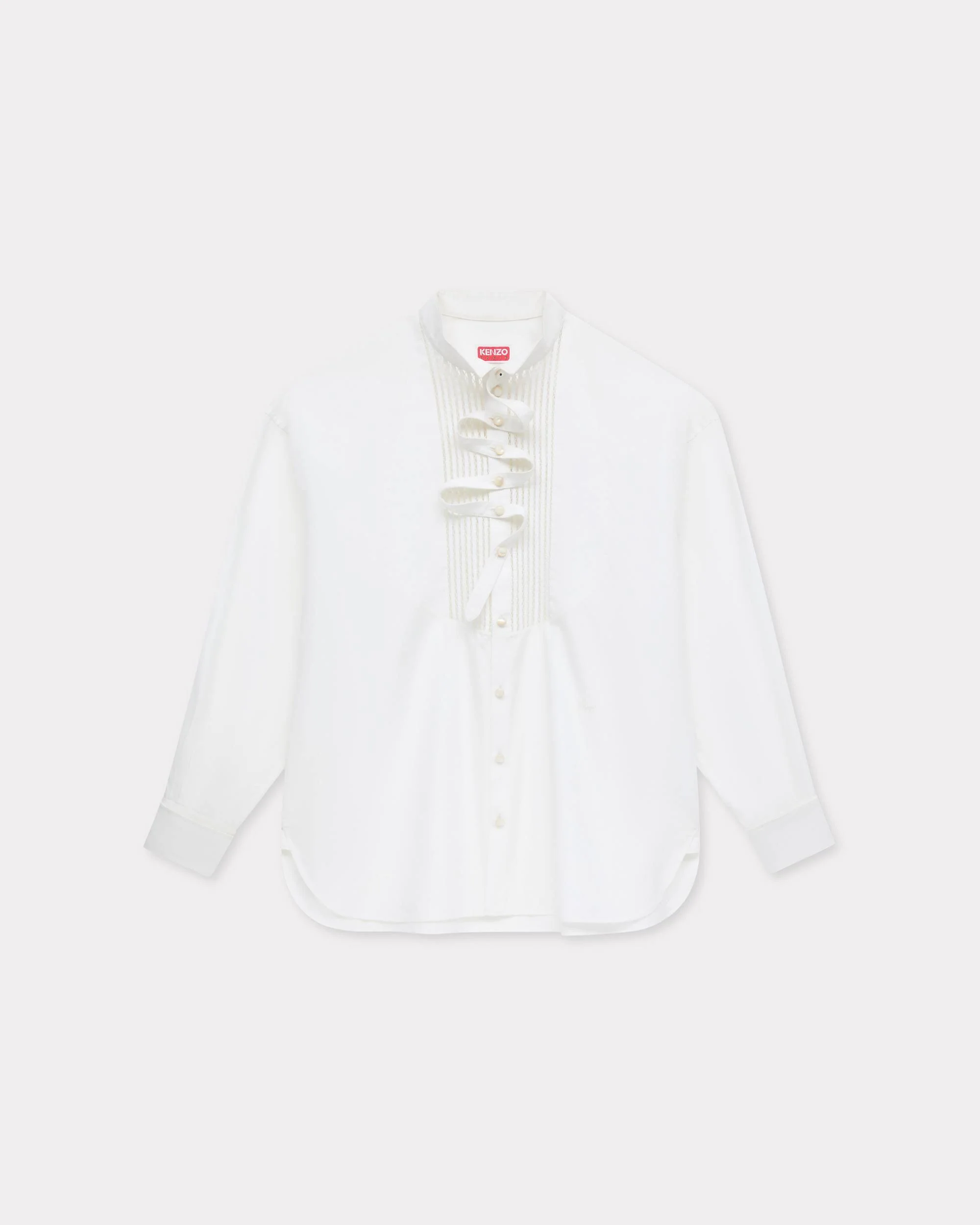 Oversized shirt. Poplin cotton. Zig zag tie detail played with the buttons at front. Double cuffs to play with the turn ups. Tonal front 'KENZO Archive' embroidery. Product Reference: FF62CH2749LI.01 SIZE & FIT The model is 175 cm tall and is wearing size S. Oversize fit. COMPOSITION & CARE Made in Madagascar 100% cotton Mild professional dry-cleaning in: hydrocarbons Line drying in the shade Do not tumble dry