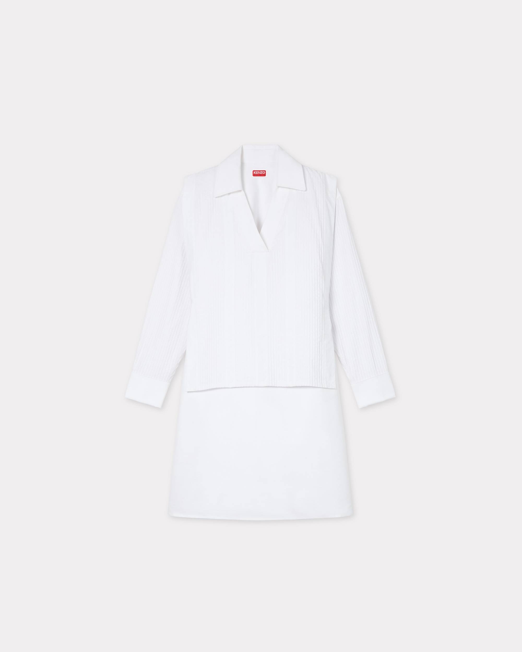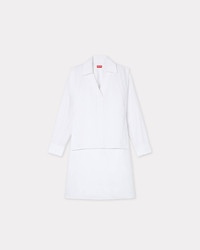 Shirting dress. Oxford cotton mixed with poplin. V-neck. Three buttons at cuffs. Adjustable belt with metallic buckle at waist. Boke Flower button at sleeves. Product Reference: FE62RO2919LO.01 SIZE & FIT The model is 175 cm tall and wears a size S. Oversize fit. Back length at 100 cm. COMPOSITION & CARE Made in Madagascar 100% cotton Do not bleach Mild professional dry-cleaning in: hydrocarbons Iron at low temperature Line drying in the shade Do not tumble dry Do not wash Do not wet-clean