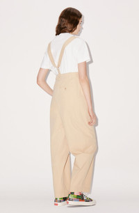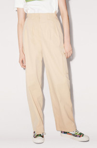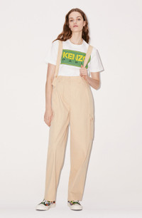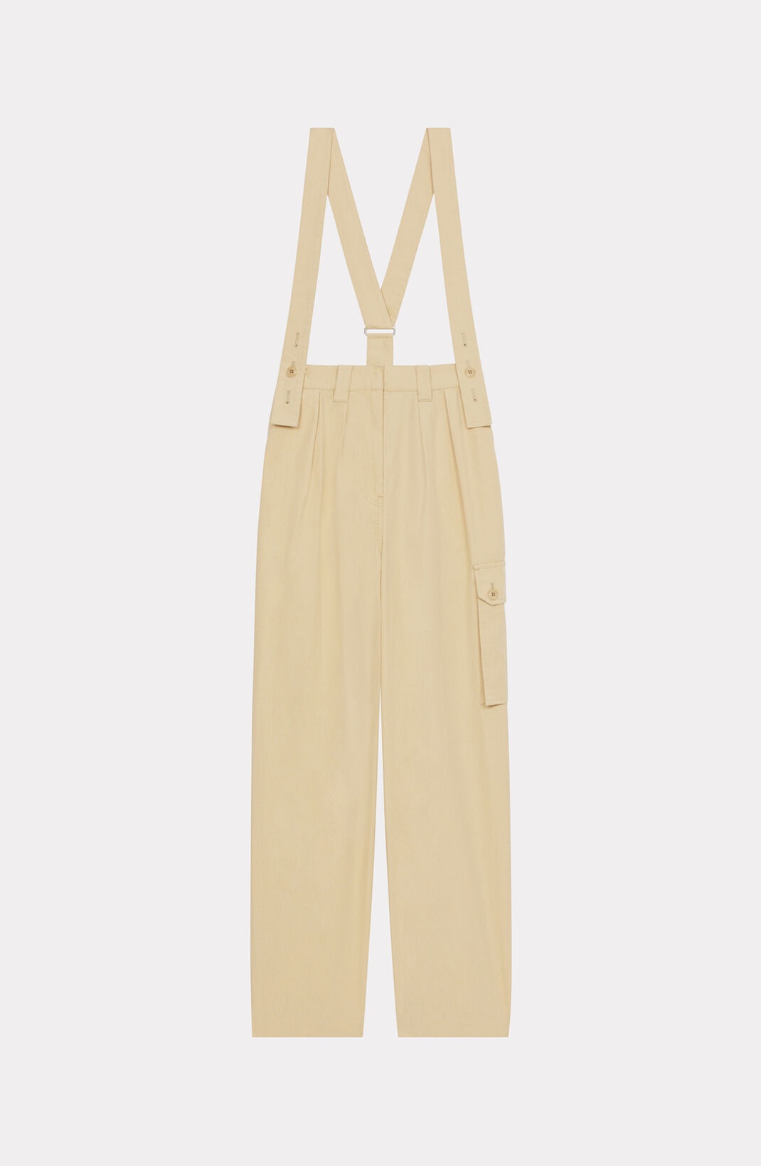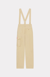These KENZO Paris cargo trousers are a real streetwear garment, with their loose cut and large pocket on the leg. They will bring a dynamic touch to your look. In the style of vintage dungarees, they have braces that can be left unbuttoned for a timeless urban look. Cargo trousers. Large flap pocket on leg with a KENZO Paris label. Adjustable removable straps. Fastens with a zip. SIZE & FIT Loose cargo trousers. Length of leg: 108 cm. COMPOSITION & CARE Made in Romania 100% cotton