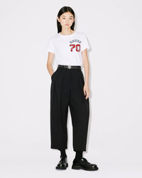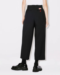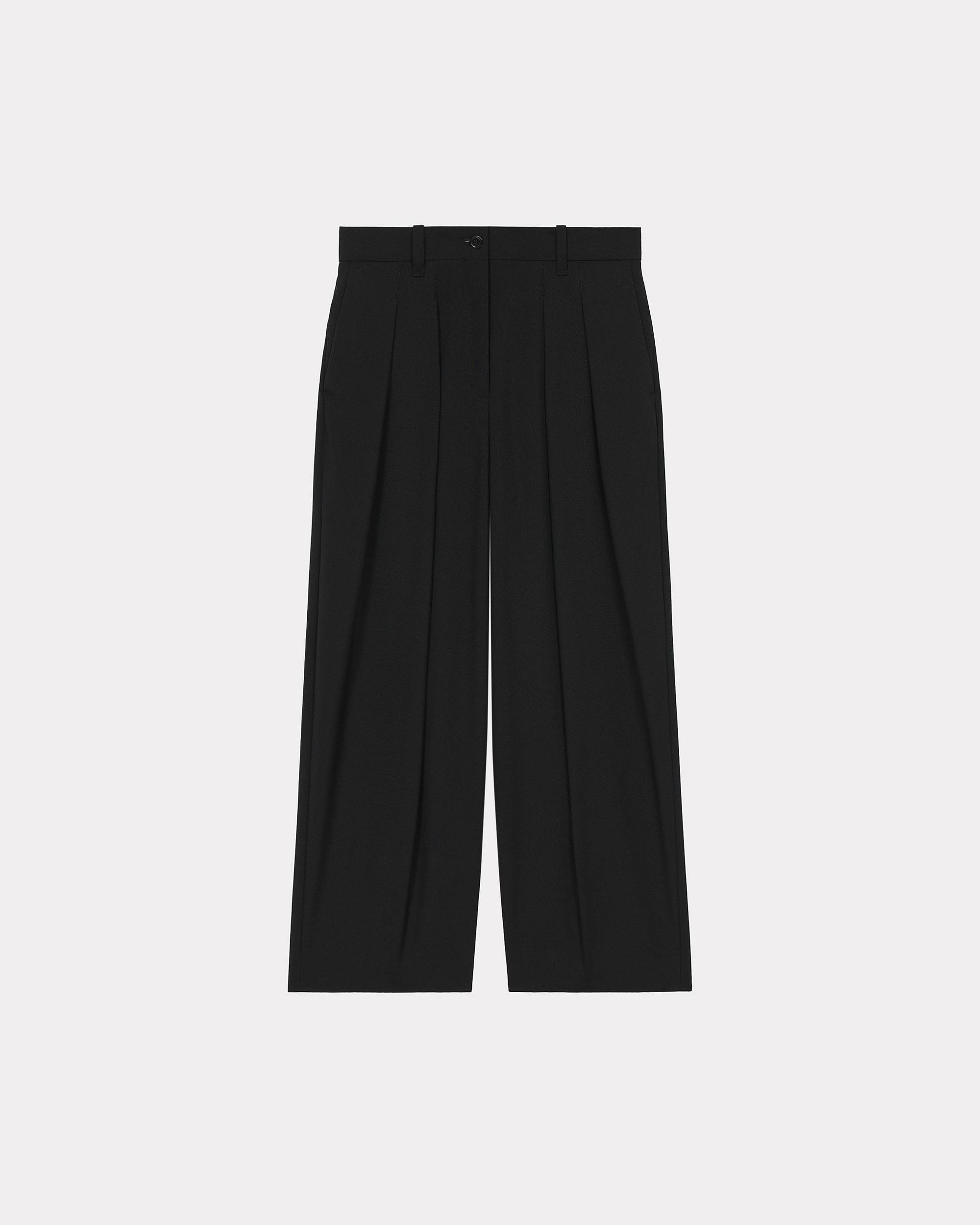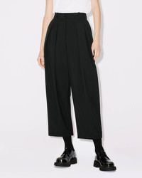 These trousers stand out thanks to the elegant, masterful pleating on the leg. The high waist and slightly cropped cut give them a slender, original look. This piece is perfect for classic wardrobes. Cropped pleated trousers. High waist. Straight leg. Raised pleats. Two side pockets. Two flap pockets at the back. Belt loops. KENZO Paris label and BOKE FLOWER on one back pocket. Zip fastening below a button tab. SIZE & FIT Leg length: 93 cm. The model is 176 cm tall and wears a size S. COMPOSITION & CARE Made in Romania 100% virgin wool
