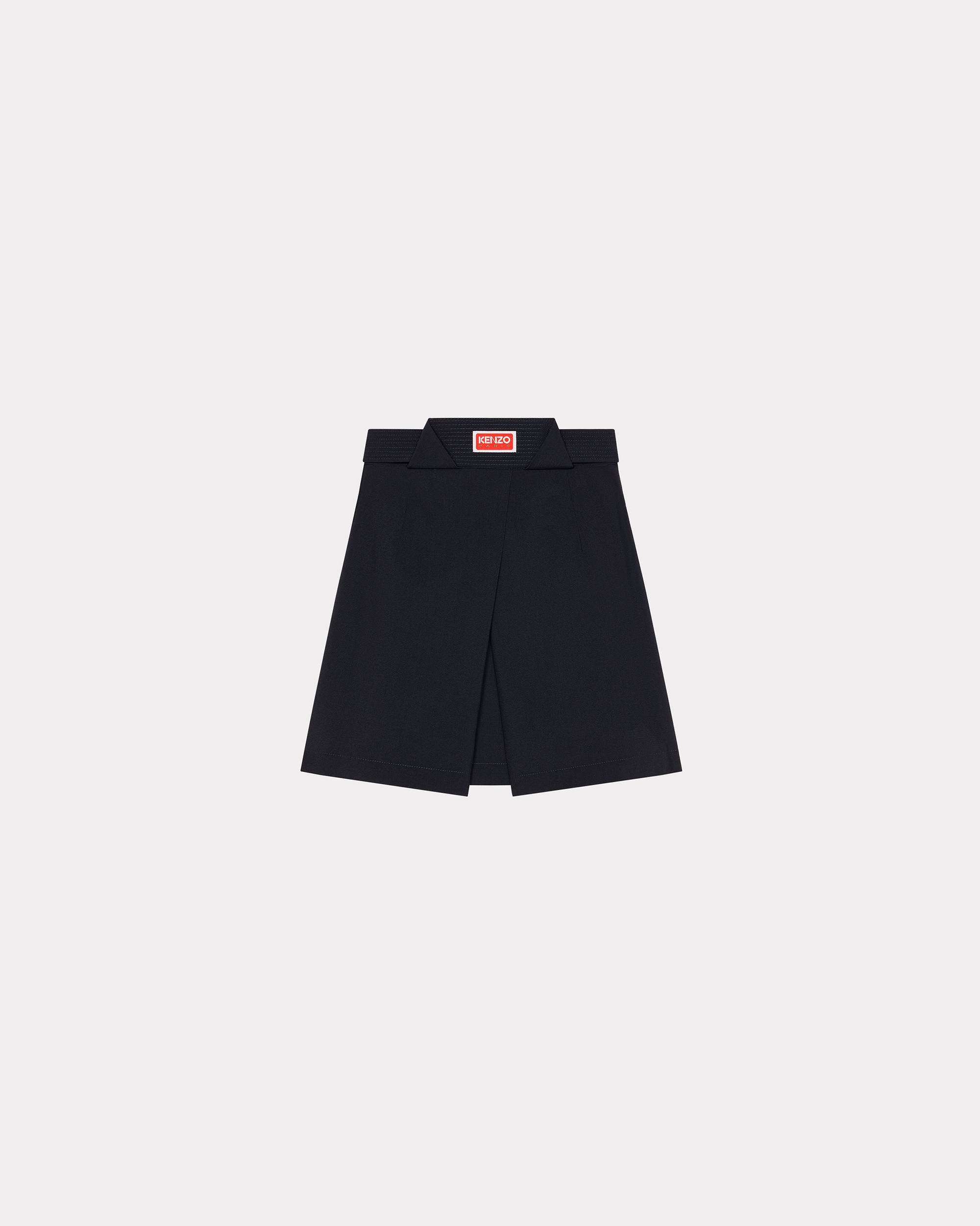 This pleated mini skirt represents the meeting of East and West. The cut is inspired by classic schoolgirl skirts, while the belt that ties at the waist is reminiscent of the uniforms worn for kendo, a traditional Japanese martial art. In keeping with Nigo's fondness for mixing styles, this piece can be paired with a logo top from the same collection. Pleated virgin wool mini skirt. KENZO Paris label on the back of the waistband. Pleats on front and inverted pleats on back. Tie belt. SIZE & FIT Length at back: 41 cm. The model is 176 cm tall and wears a size S. COMPOSITION & CARE Made in Bulgaria 100% virgin wool