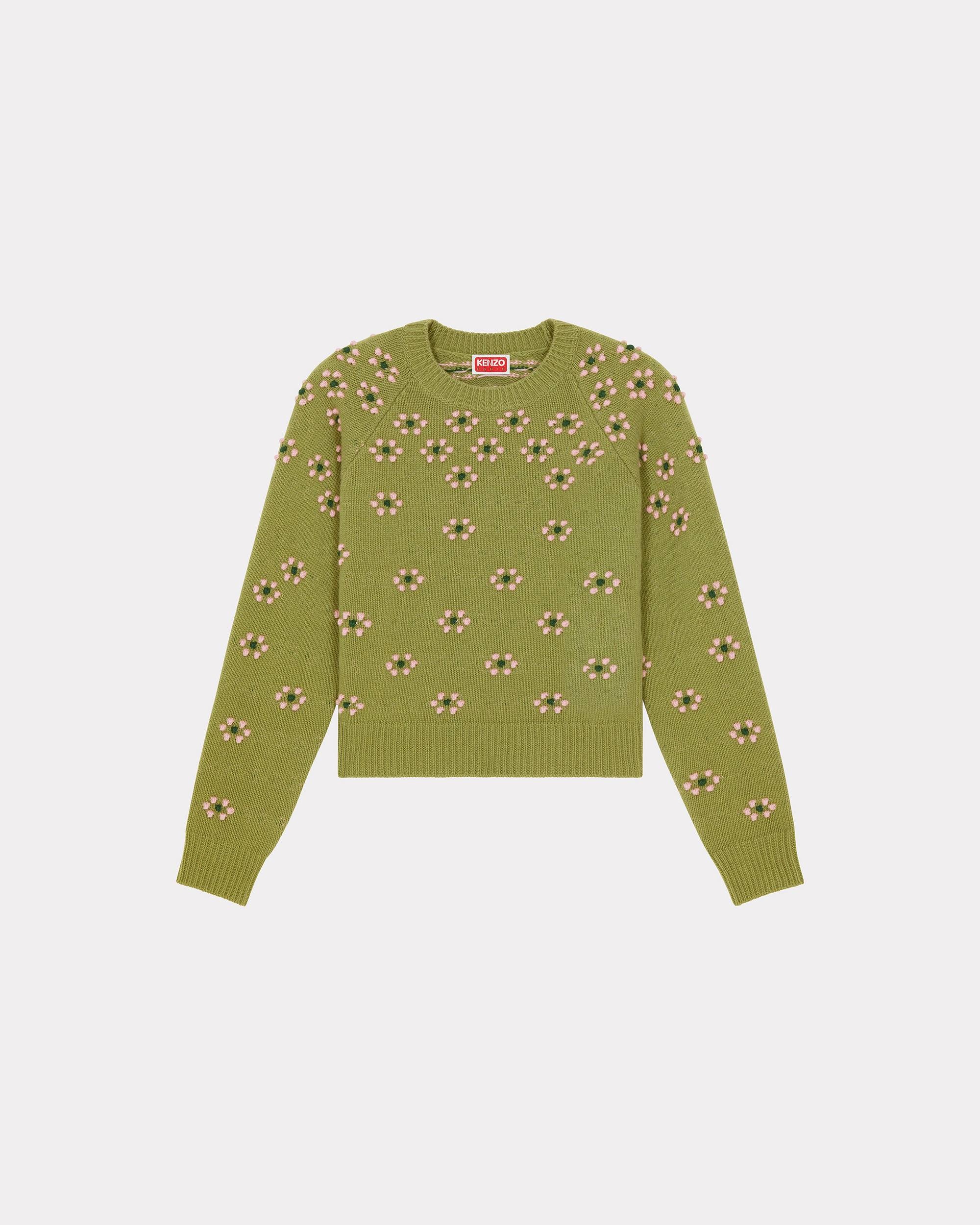 This jumper boasts a 'Fair Isle' pattern in the form of flowers created with a popcorn stitch. This original and elegant design will add a touch of pop style to a classic outfit. It is made from wool, meaning it is warm and comfortable to wear. Woollen jumper. Long sleeves. Round neckline. All-over contrasting 3D flowers. Embroidered KENZO signature at nape of neck. SIZE & FIT The model is 185 cm tall and wears a size M. COMPOSITION & CARE Made in Italy 100% wool
