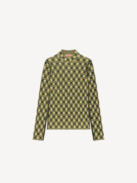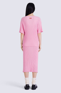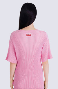 Emblematic of Nigo's colourful pop style, this comfortable jumper will bring life and joy to autumn outfits. The cotton composition and short sleeves are perfect for mid-season wear. Opt for a coordinated look by pairing it with the matching flared skirt. Ribbed cotton and viscose jumper. Short sleeves. Round neck. Embroidered KENZO Paris label on the back. Front pocket. SIZE & FIT Comfortable fit, fluid wear. The model is 176 cm tall and wears a size S. COMPOSITION & CARE Made in China 60% cotton, 40% viscose