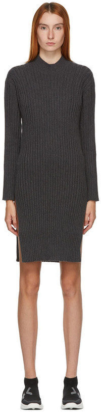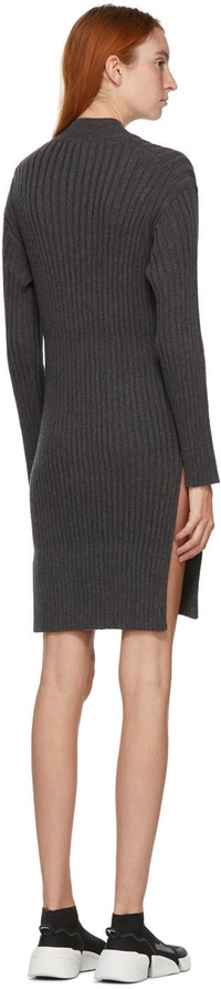 Long sleeve rib knit wool short dress in grey. Crewneck collar. Vented side-seams. Supplier color: Anthracite