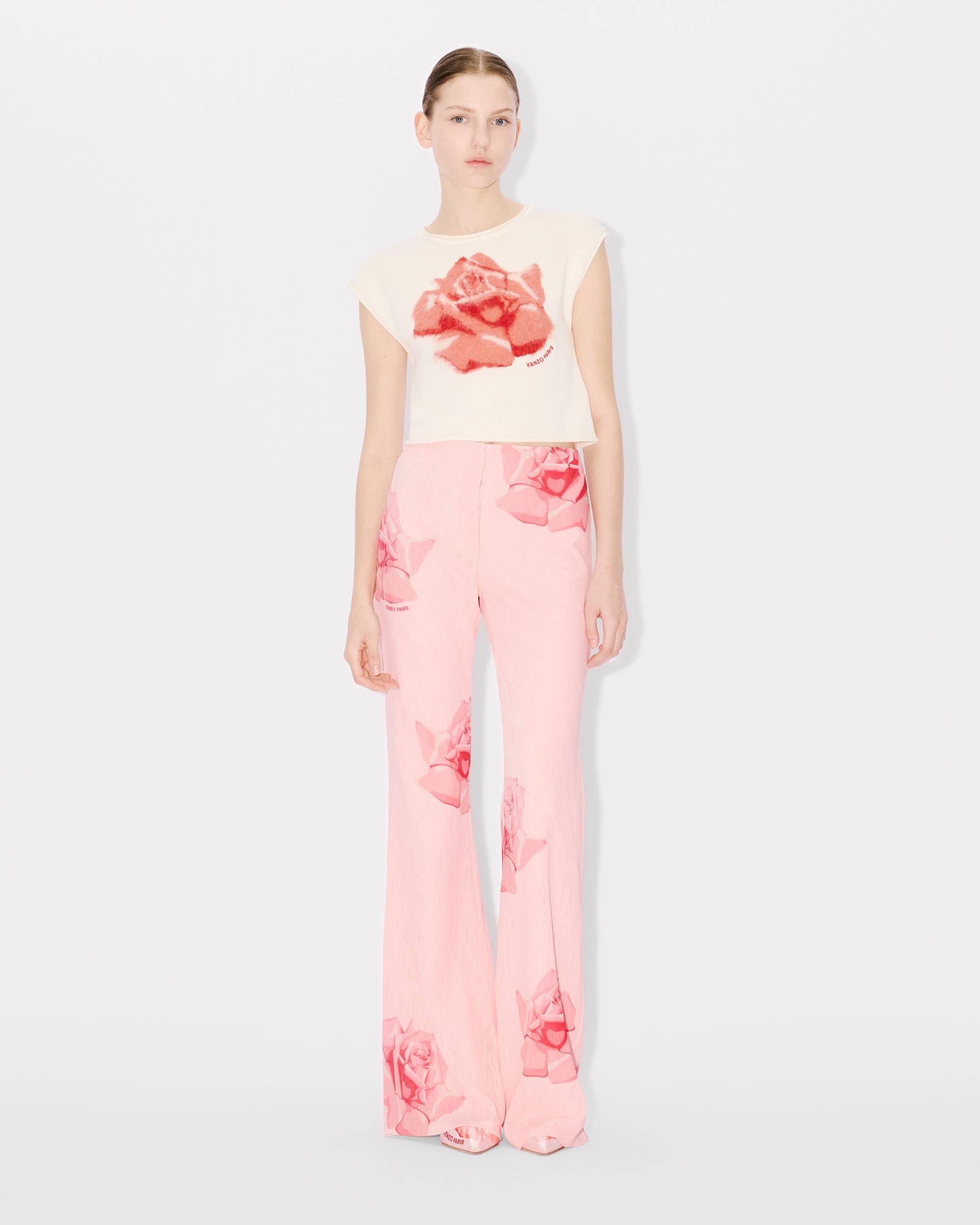 'KENZO Rose' pleated pants. Large 'Kenzo Rose' seasonal print. Pleated all-over printed fabric. Regular waist and flared leg. Side pockets at front. Elasticated waist. KENZO Paris signature inside the print. Product Reference: FE52PA0859E1.34 SIZE & FIT Leg length at 113 cm. The model is 175 cm tall and wears a size S. COMPOSITION & CARE Made in Madagascar 100% polyester Do not bleach Mild professional dry-cleaning in: hydrocarbons Do not iron Flat drying Do not tumble dry Do not wash Do not wet-clean