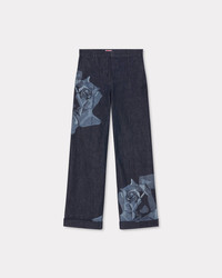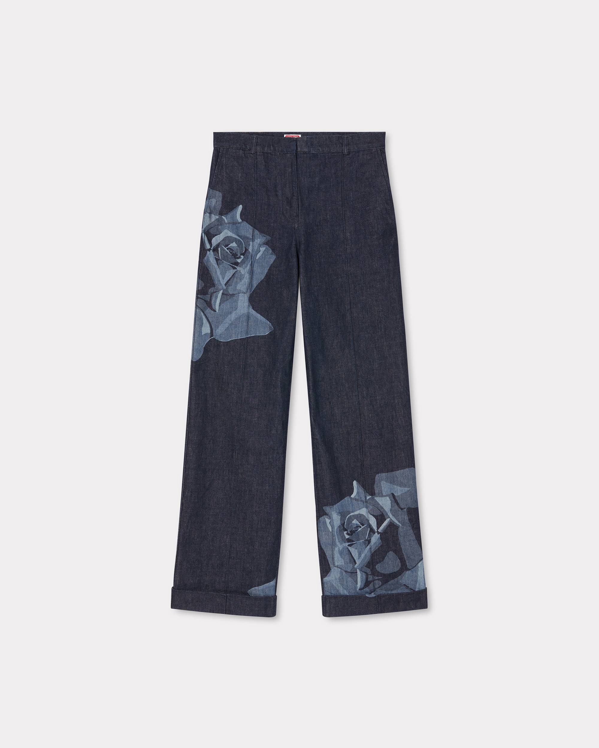 'KENZO Rose' tailored denim pants. Large laser 'Kenzo Rose' at front. Rinse blue carry over wash. Japanese denim. Regular waist. Tonal topstitches and seam at front. 'Kenzo Paris' jacron in paper at back. SIZE & FIT Leg length at 108 cm. The model is 175 cm tall and wears a size S. COMPOSITION & CARE Made in Portugal 100% cotton