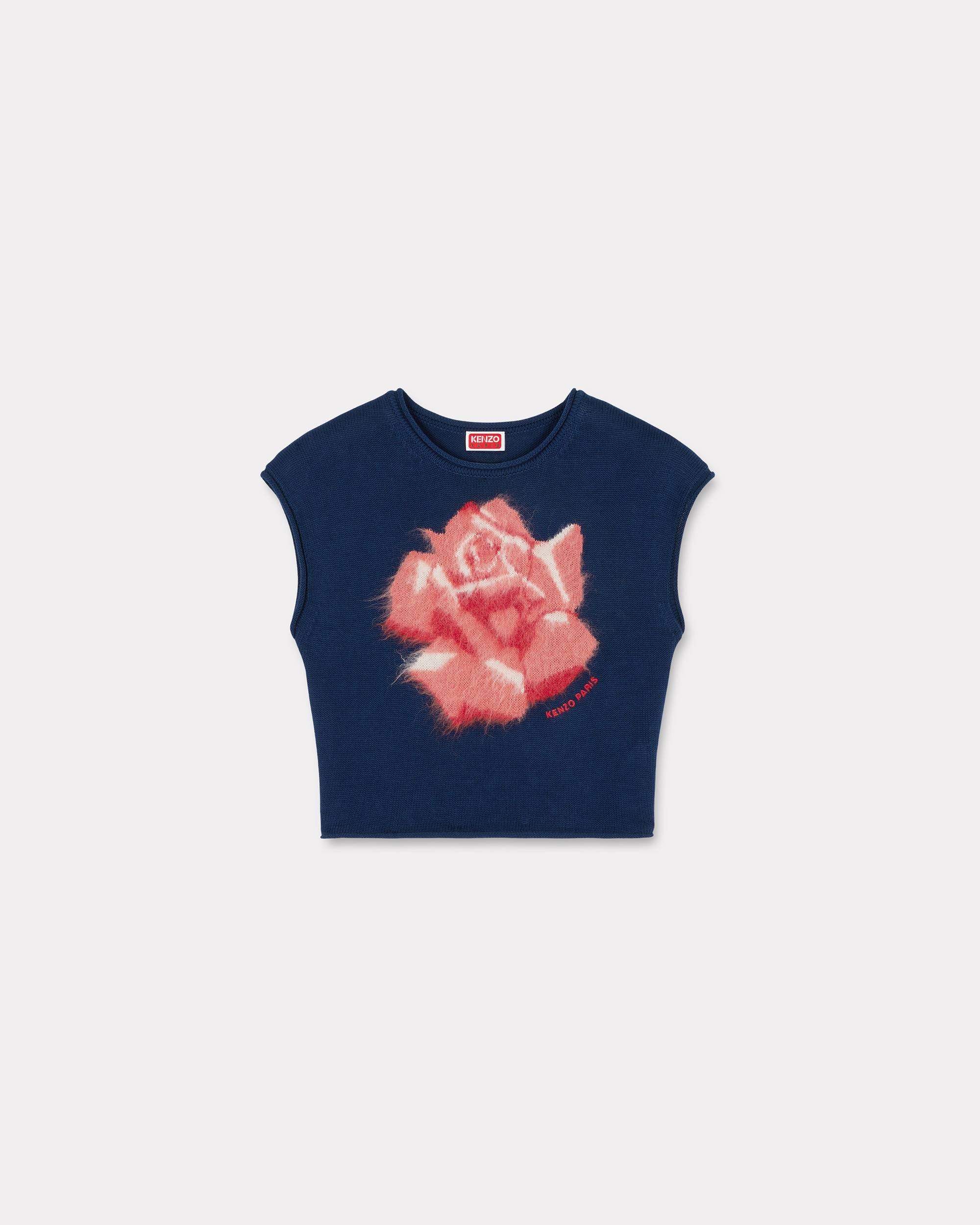 'KENZO Rose' sleeveless knitted top. Seasonal front placed graphic. Cotton fabric. ‘Kenzo Paris’ branding included just below the graphic. Product Reference: FE52PU4683BM.77 SIZE & FIT The model is 175 cm tall and wears a size S. COMPOSITION & CARE Made in China 84% cotton, 6% alpaca, 5% nylon, 4% wool, 1% lycra Do not bleach Mild professional dry-cleaning in: hydrocarbons Iron at low temperature Flat drying in the shade Do not tumble dry 30°C very mild fine wash Mild professional wet-cleaning