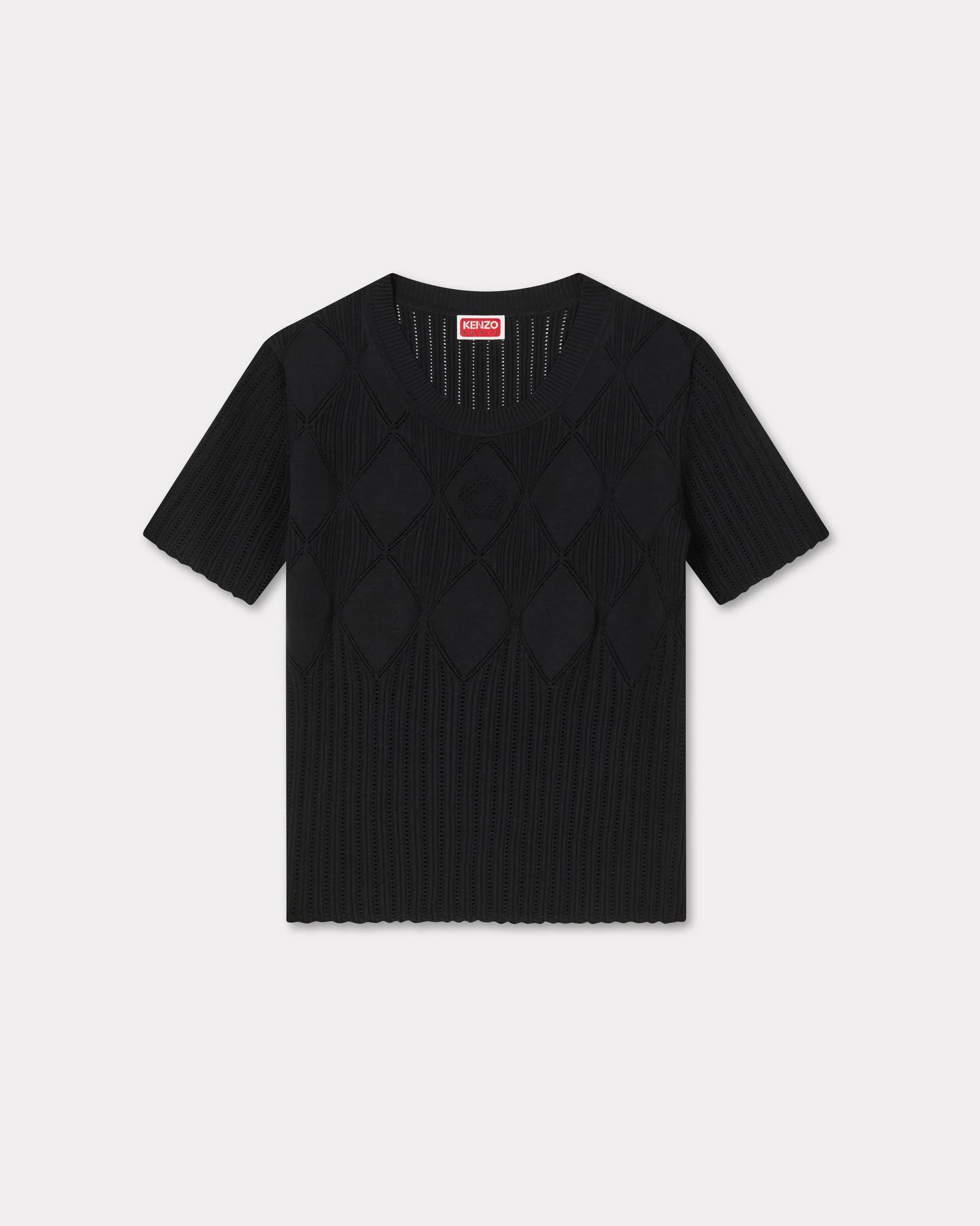 Short sleeve knit top. Viscose mix Stretch Lace. ‘Boke Flower’ branding in open stitch technique included in the knit. Product Reference: FF62TO6033CW.99J SIZE & FIT The model is 175 cm tall and is wearing size S. COMPOSITION & CARE Made in China 86% viscose, 14% polyester Mild professional dry-cleaning in: hydrocarbons Iron at low temperature Flat drying in the shade Do not tumble dry