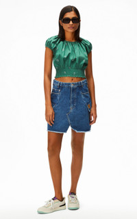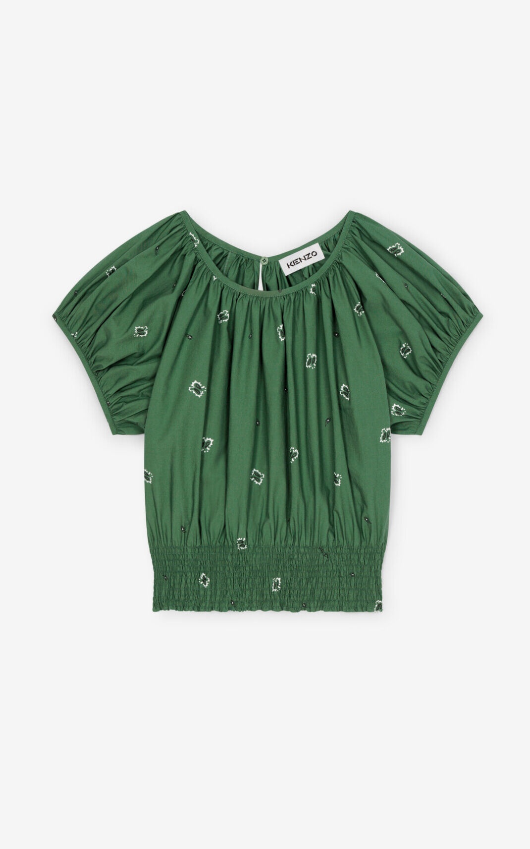 With a short cut, this top's charm comes from its ultra-feminine style. The smocked neckline and waistband structure the piece and flatter the silhouette. Inspired by the iconic 1990s accessory, the print goes perfectly with romantic or bohemian chic outfits. Short smocked 'Bandana' top. Short pleated sleeves. Smocked standing collar. All over 'Bandana' print. Smocked hem. Size & fit Smaller fit. Short. Length at back: 45 cm. Composition & care Made in Madagascar Cotton poplin. 100% cotton