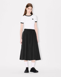 'Boke Flower 2.0' midi skirt. Fluid polyester cotton technic fabric. Elastic at waist and 2 seam side pockets. 'Boke Flower 2.0' badge at side and 'Boke Flower 2.0' jacquard ribbon on all the side length. Product Reference: FF62JU3169FI.99 SIZE & FIT The model is 175 cm tall and is wearing size S. Back length at 75 cm. COMPOSITION & CARE Made in Madagascar 64% polyester, 36% cotton Mild professional dry-cleaning in: hydrocarbons Iron at low temperature Do not tumble dry