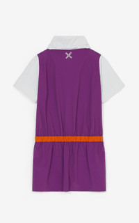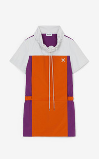 This KENZO Sport dress pairs a retro colorblock style with a modern, ultra-comfortable sporty cut. Ideal for midseason, it can be worn with a jacket on cooler days. KENZO Sport nylon dress. Stand-up collar with hood and drawstring. 'Little X' print on the chest. Elasticated waist. Kangaroo pocket. Size & fit Back length: 87 cm. Composition & care Made in Romania 100% polyamide