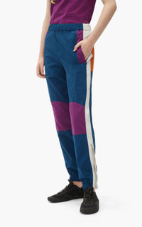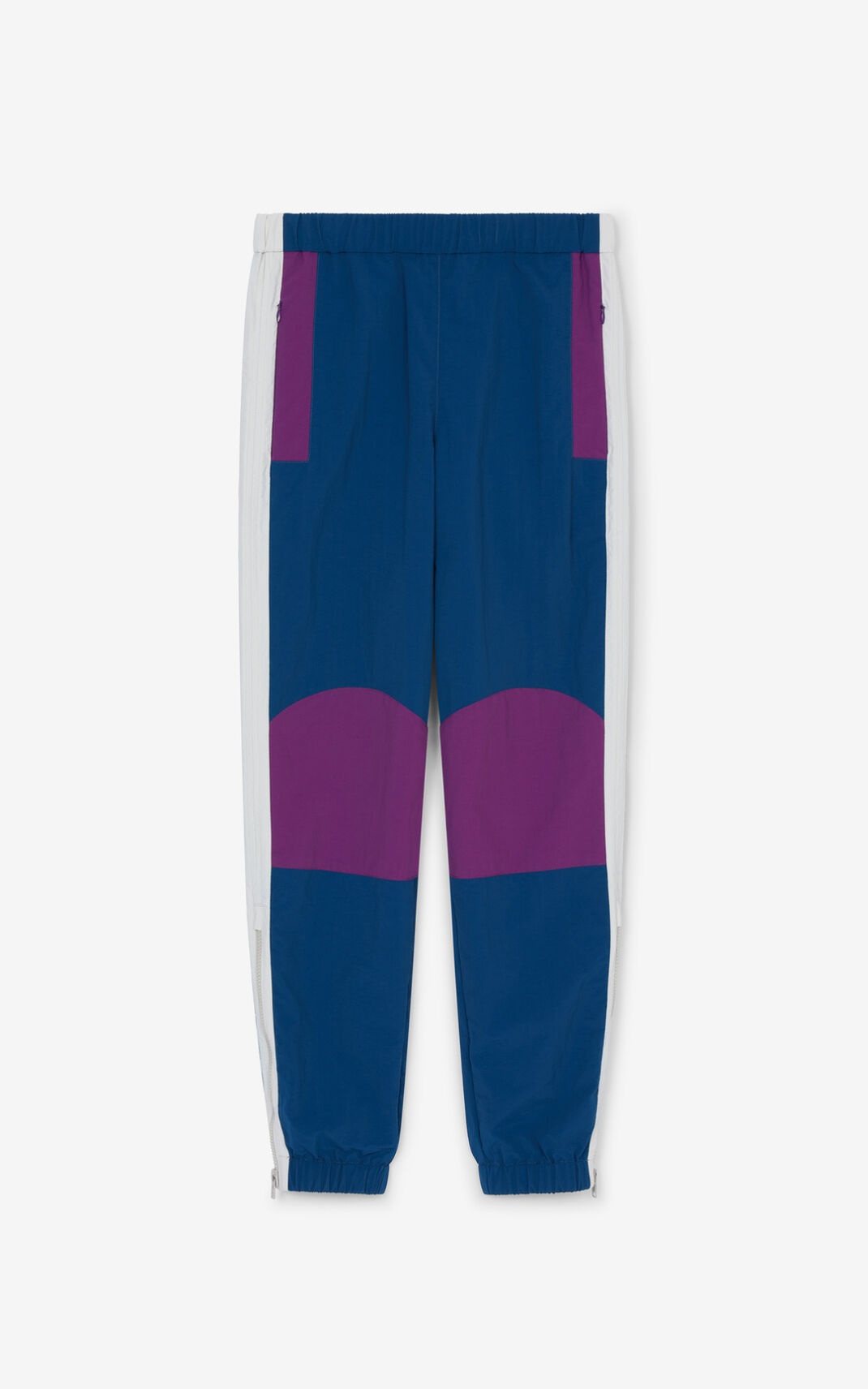 These iconic sportswear trousers can be worn with the matching jacket or a jersey top. The graphic colourblock design gives them a dynamic look. KENZO Sport tracksuit trousers. 'Little X' printed on the back. Zipped side pockets. Contrasting inserts and stripes on the sides. Zipped elasticated ankle cuffs. Mesh lining. Elasticated waist. Size & fit Leg length: 99 cm. Composition & care Made in Romania 100% polyamide