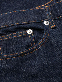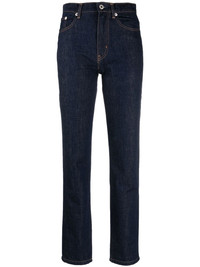 straight-fit jeans dark blue cotton denim logo patch to the rear classic five pockets belt loops concealed fly and button fastening high waist straight hem Imported Composition Cotton 100% SIZE & FIT Model measurements Height 5 ft 11 in(1.8 m) Bust/Chest 33.07 in(84 cm) Hips 37.4 in(95 cm) Waist 25.19 in(64 cm) FittingInformation This piece fits true to size. We recommend you get your regular size Cut for a slim fit Made with a mid-weight non-stretch fabric Washing instructions Machine Wash