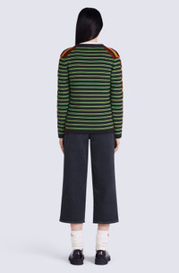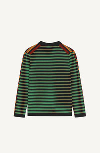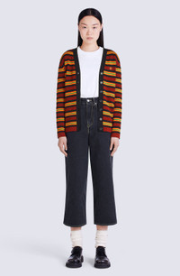 This merino wool cardigan boasts an original design with different stripes at the front and back, bringing to mind two distinct garments joined together. This retro-inspired piece is enhanced by a delicately embroidered Japanese flower on the chest. Wool-mix cardigan. Long sleeves. V neck. Different stripes at front and back. 'BOKE FLOWER' badge on chest. Ribbed cuffs and hem. Button fastening. SIZE & FIT Fitted cut. COMPOSITION & CARE Made in Turkey 62% wool, 38% cotton